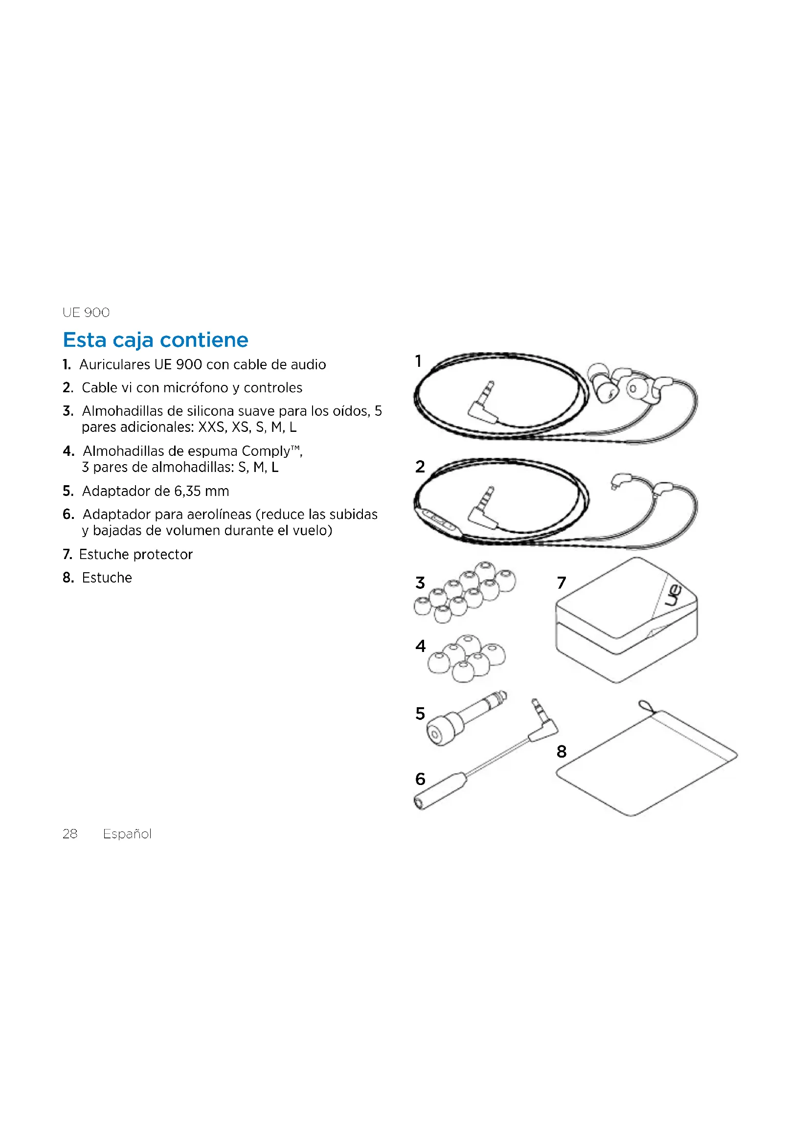 1. Auriculares UE 900 con cable de audio