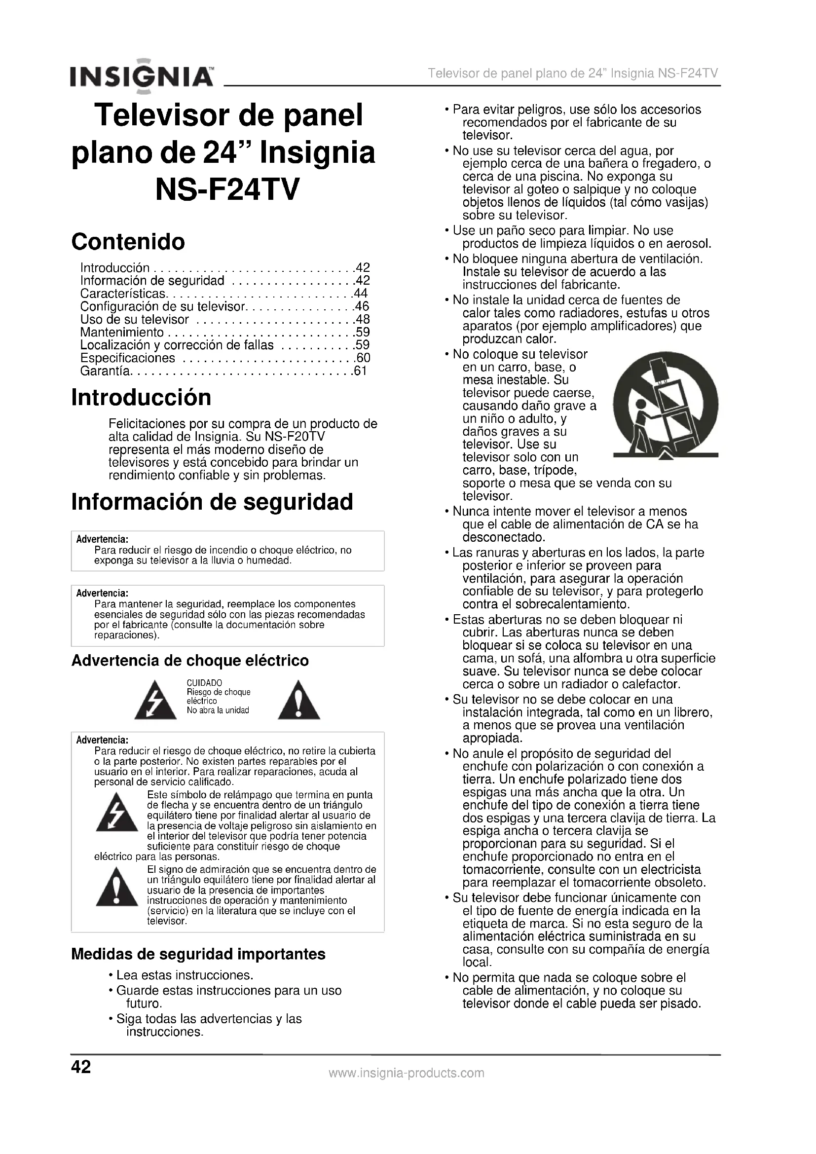 Encuentra gratis el manual del aparato NSF24TV INSIGNIA en formato PDF.