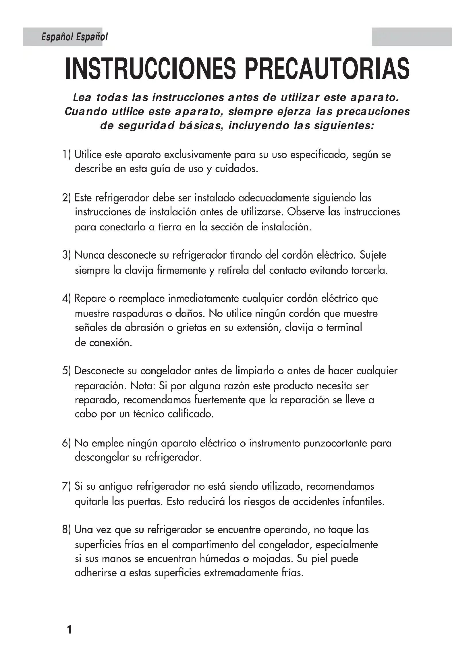 Français FrançaisINSTRUCCIONES PRECAUTORIAS Lea todas las instrucciones antes de utilizar este aparato. Cuando utilice este aparato, siempre ejerza las precauciones de seguridad básicas, incluyendo las siguientes: