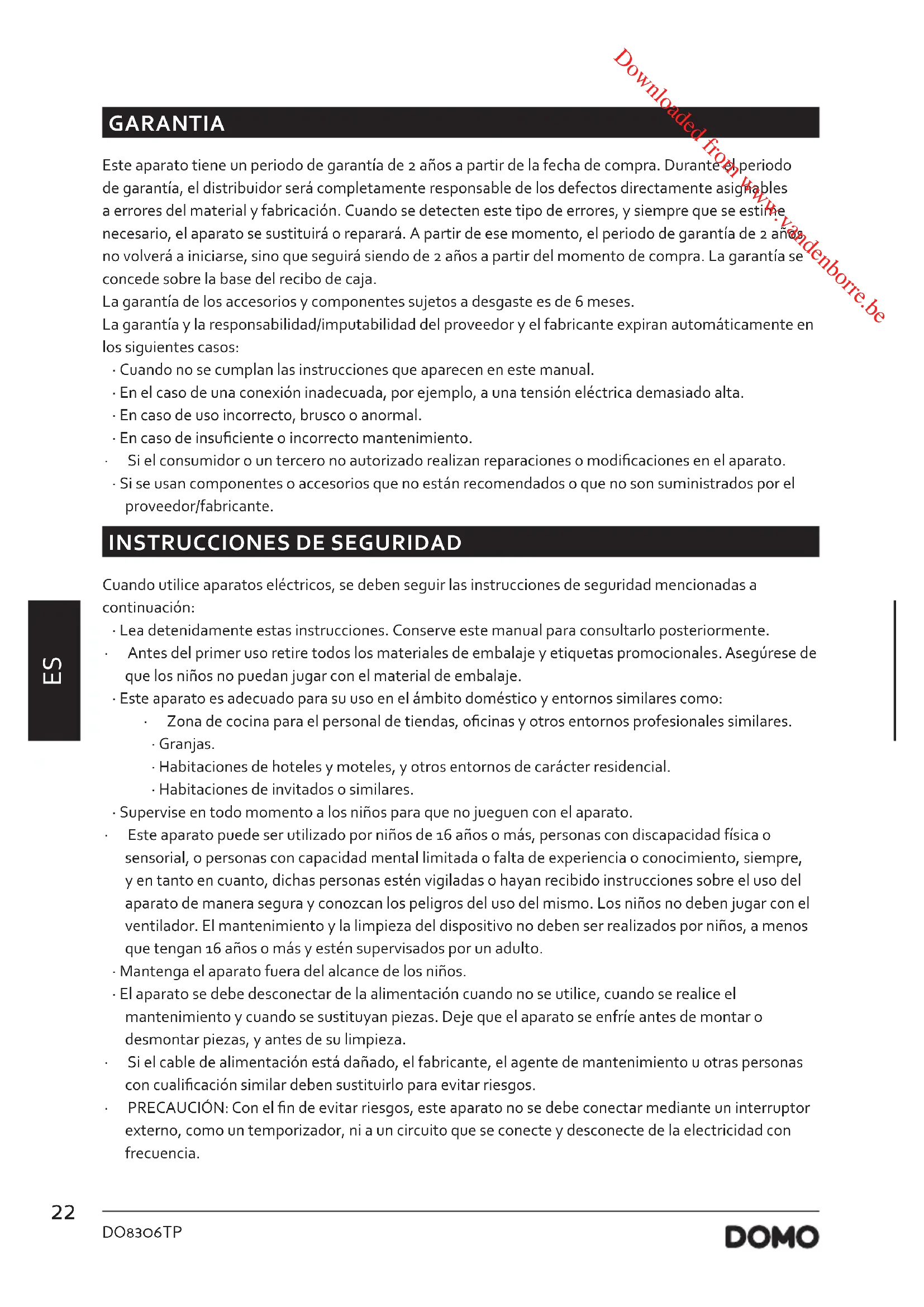 - Ni el fabricante, ni el importador ni el proveedor serán responsables. CONSERVE ESTAS INSTRUCCIONES PARA SU FUTURA CONSULTA. Downloaded from www.vandenborre.be24 DO8306TP