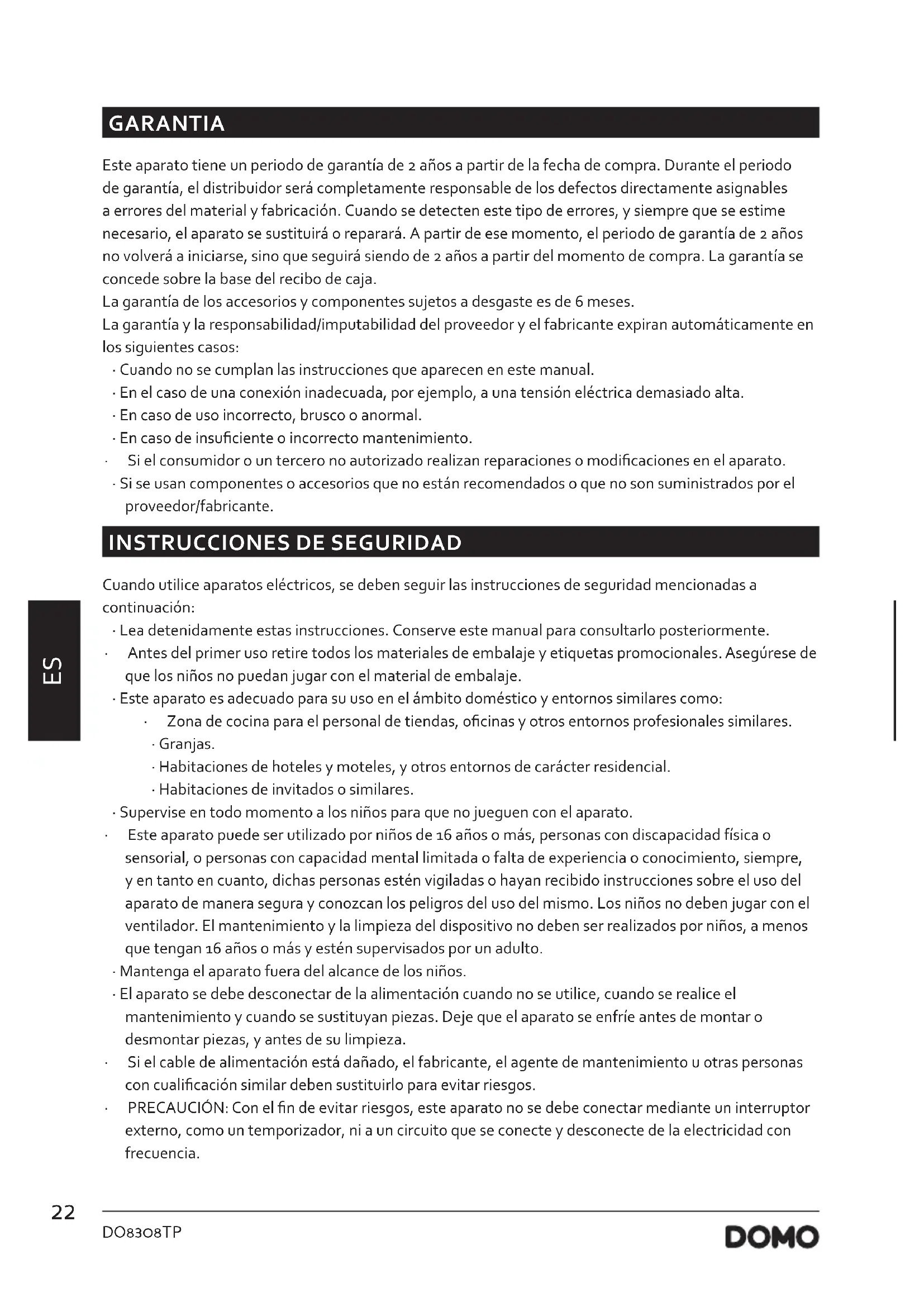 - Ni el fabricante, ni el importador ni el proveedor serán responsables. CONSERVE ESTAS INSTRUCCIONES PARA SU FUTURA CONSULTA.24 DO8308TP