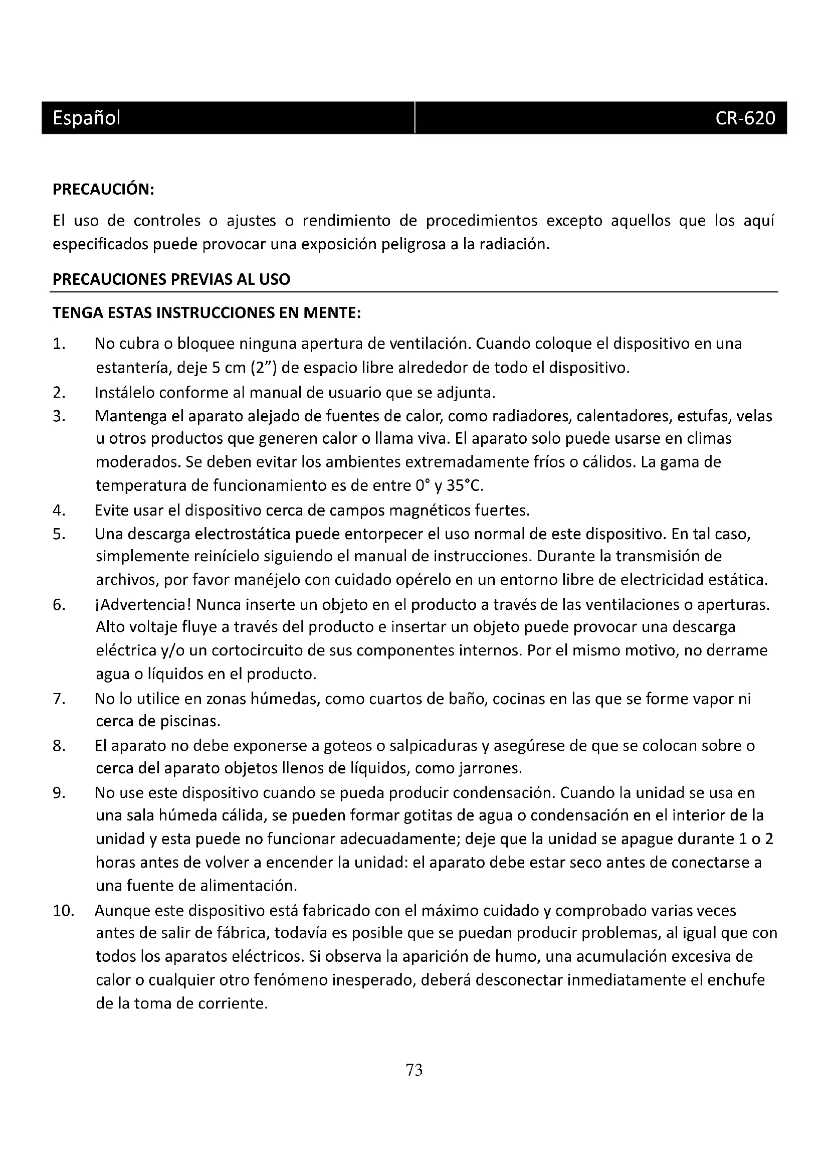 10. Aunque este dispositivo está fabricado con el máximo cuidado y comprobado varias veces
