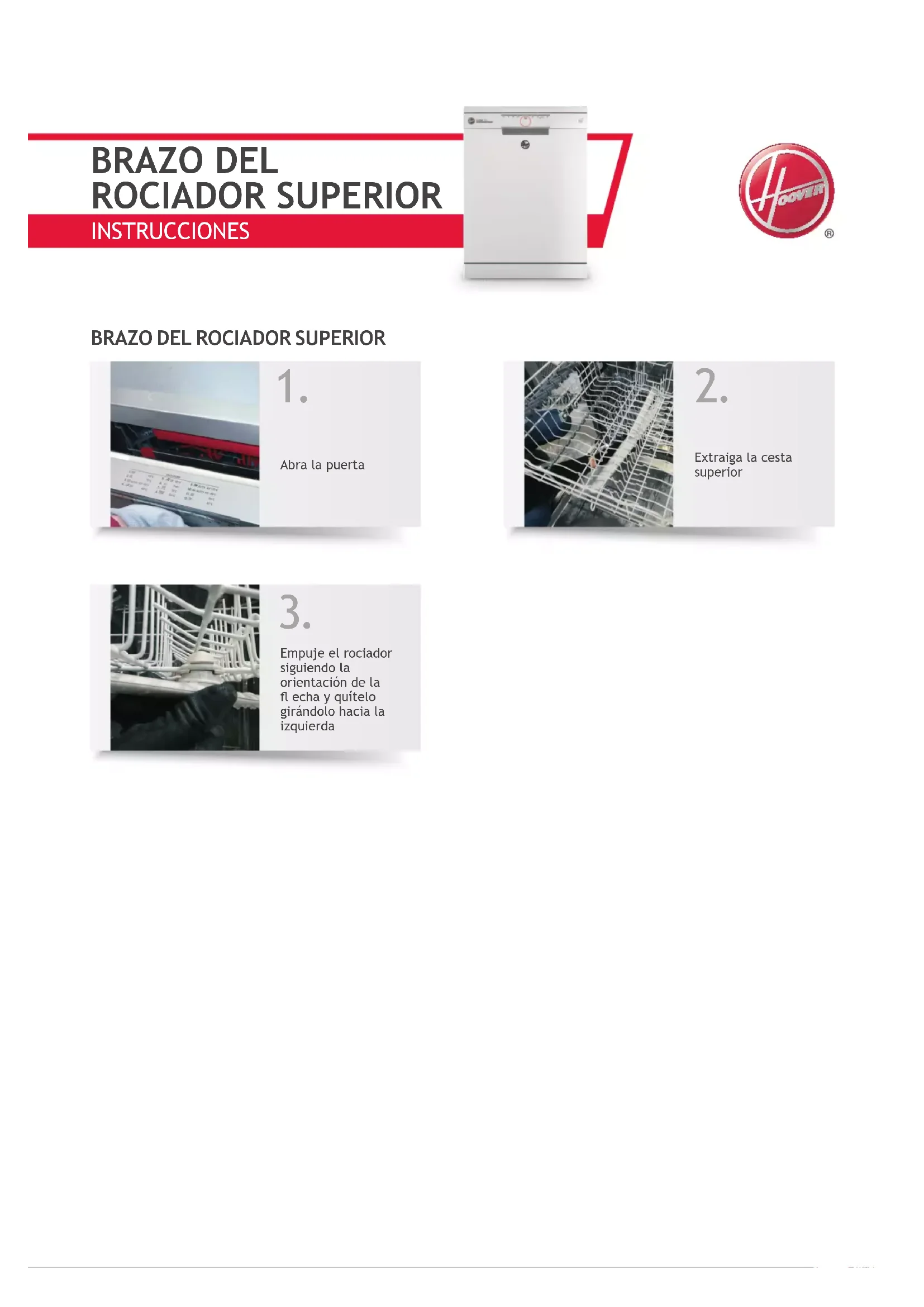 BRAZO DEL ROCIADOR SUPERIORINSTRUCCIONES Abra la puerta Extraiga la cesta inferior