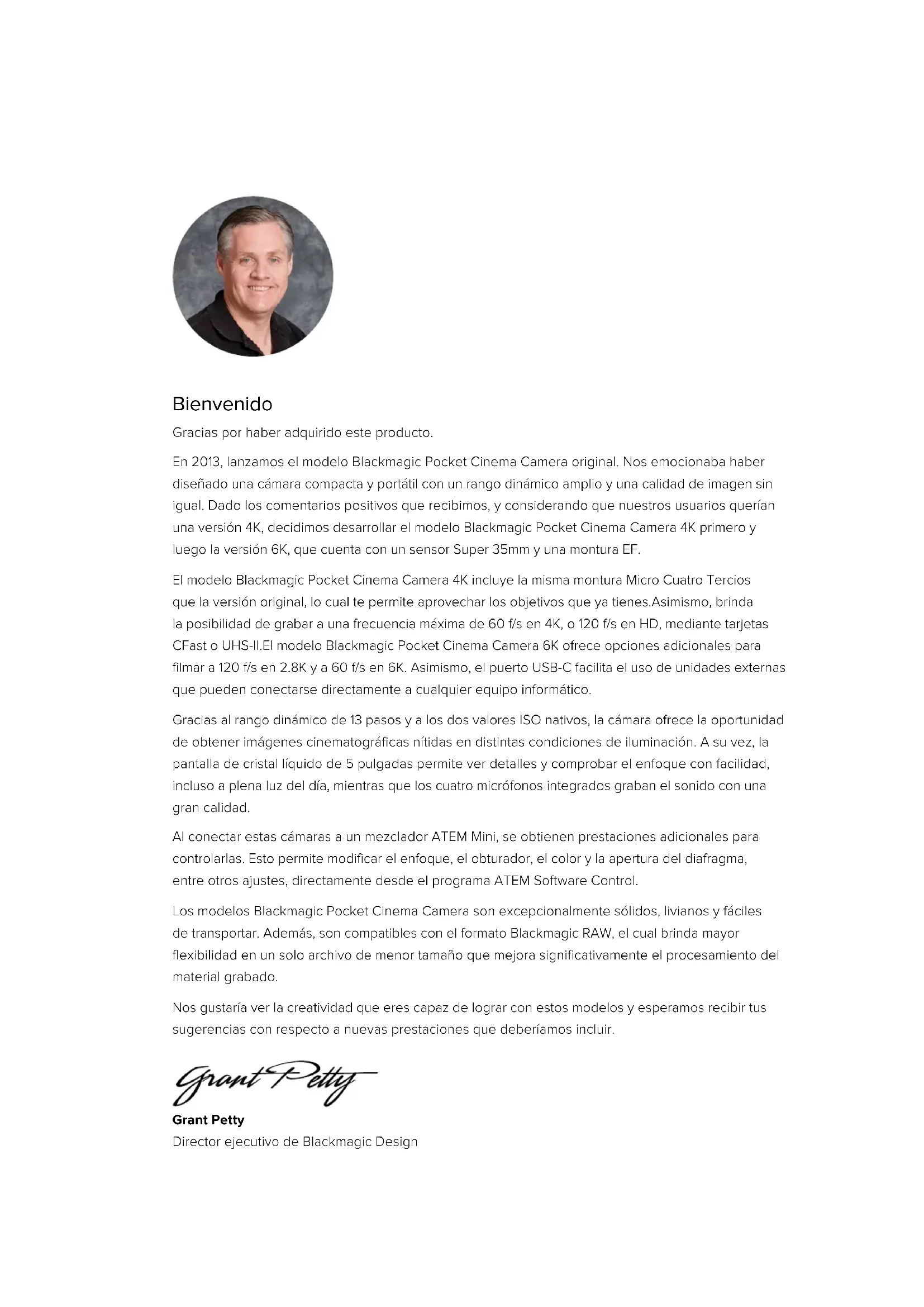 MANUAL DE USUARIO Pocket Cinema Camera 4K Blackmagic Design