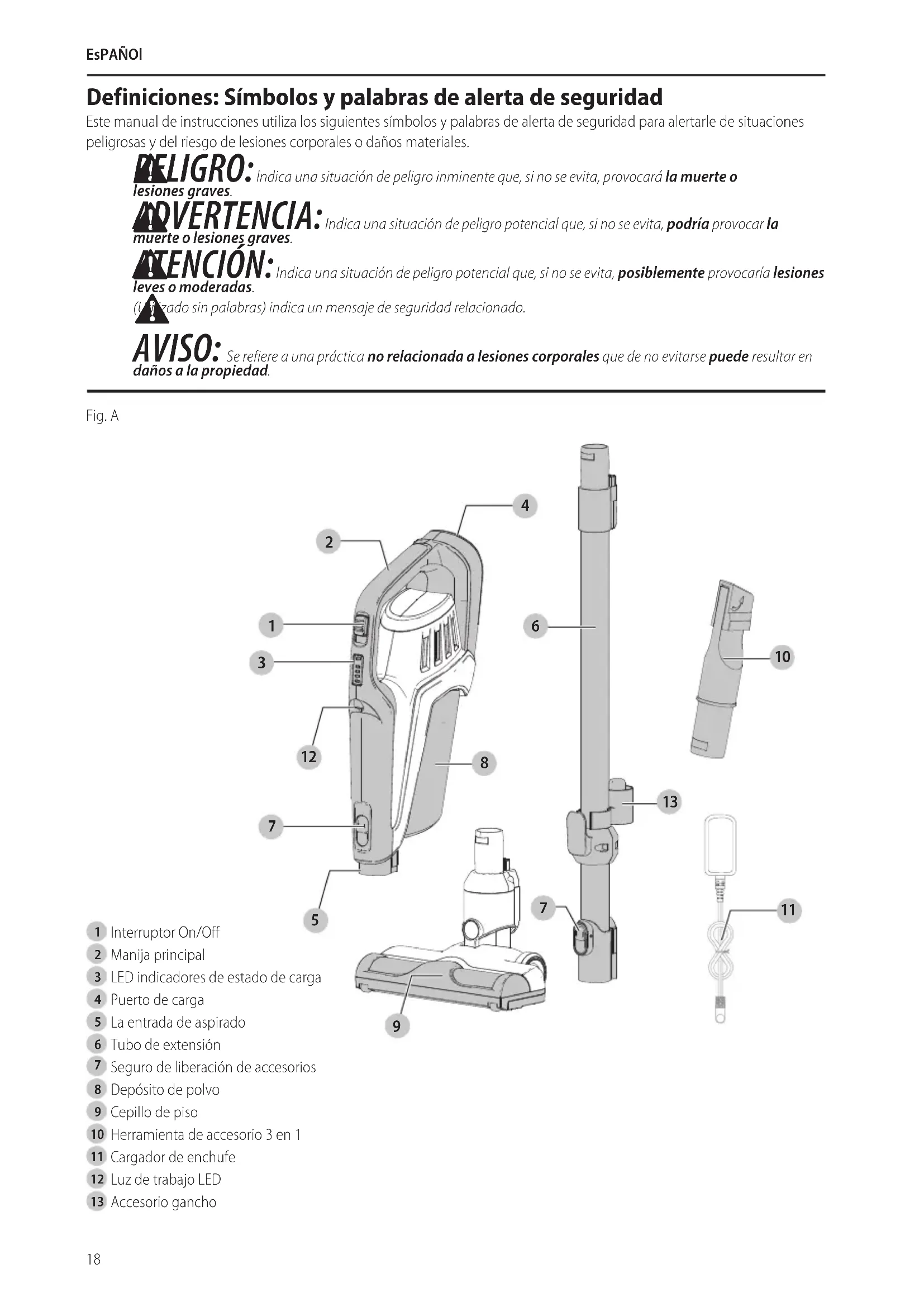 | Espanol (traducido de las instrucciones originales) | 18 |