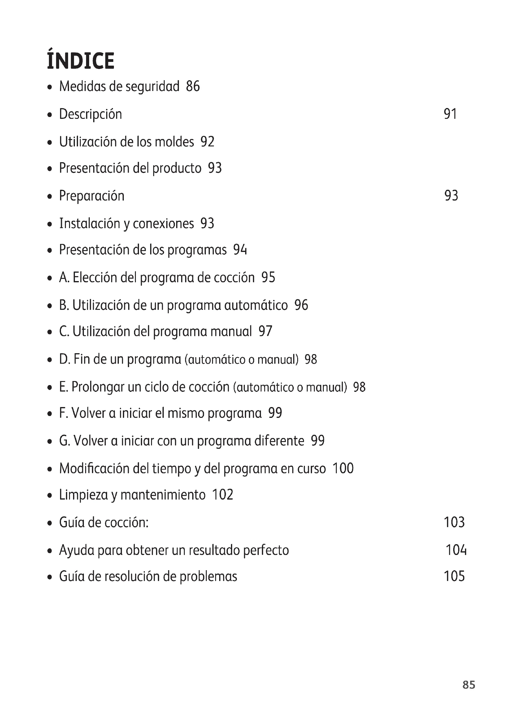 - A. Elección del programa de cocción 95