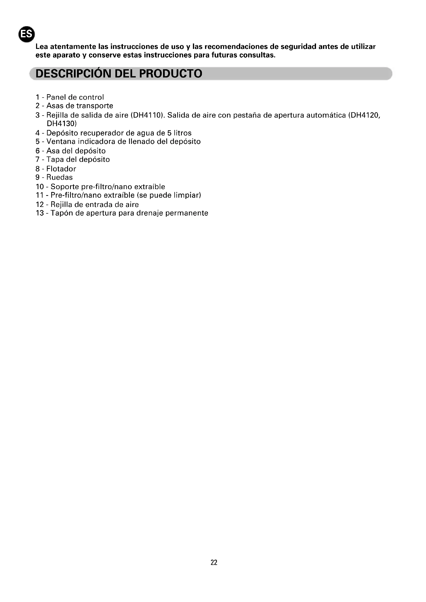 Lea atentamente las instrucciones de uso y las recomendaciones de seguridad antes de utilizar este aparato y conserve estas instrucciones para futuras consultas. RO_Deshumidificateur_DH41_NC00112165-03_NC00112165 10/04/14 14:19 Page2223