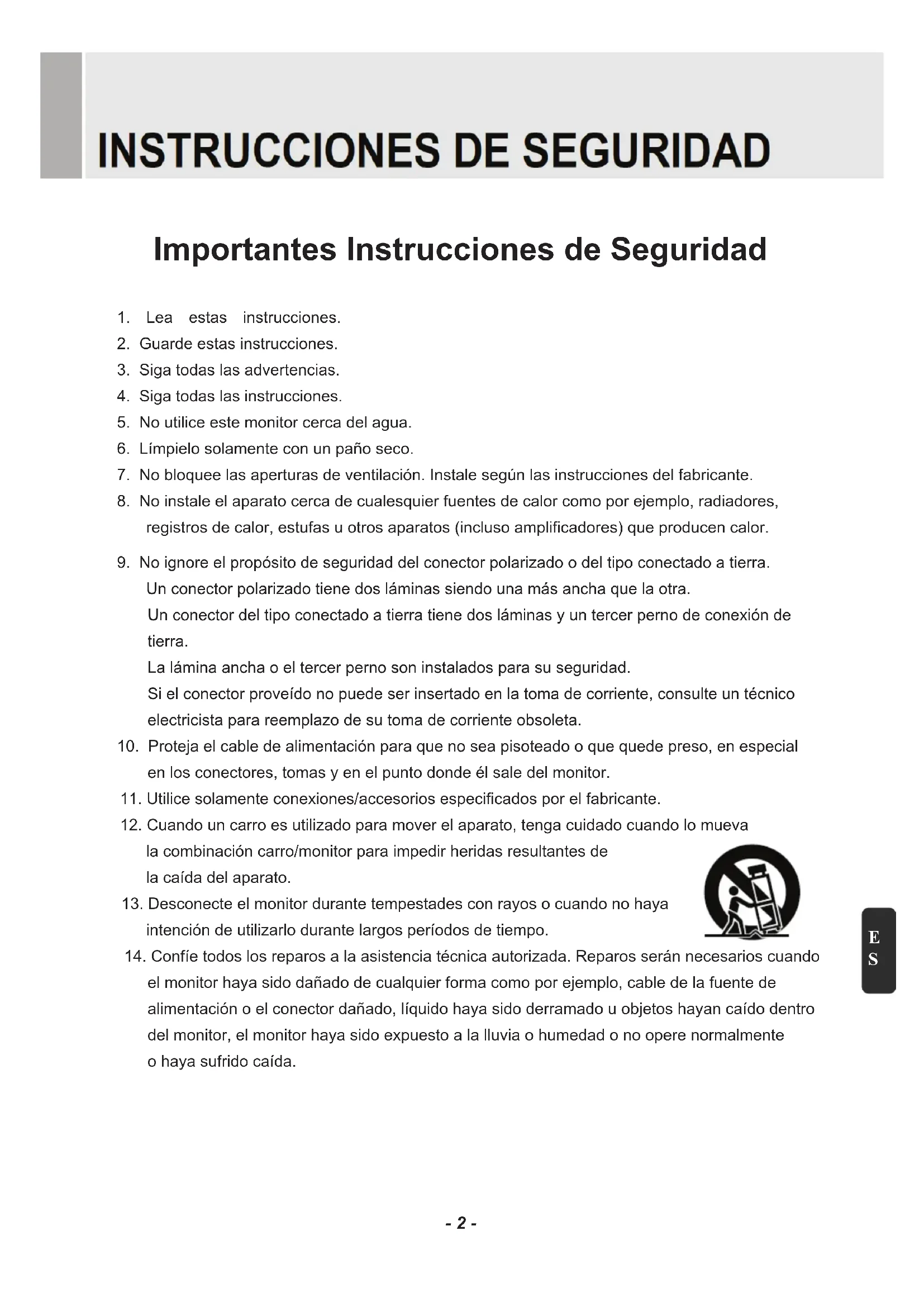 5. No utilice este monitor cerca del agua.