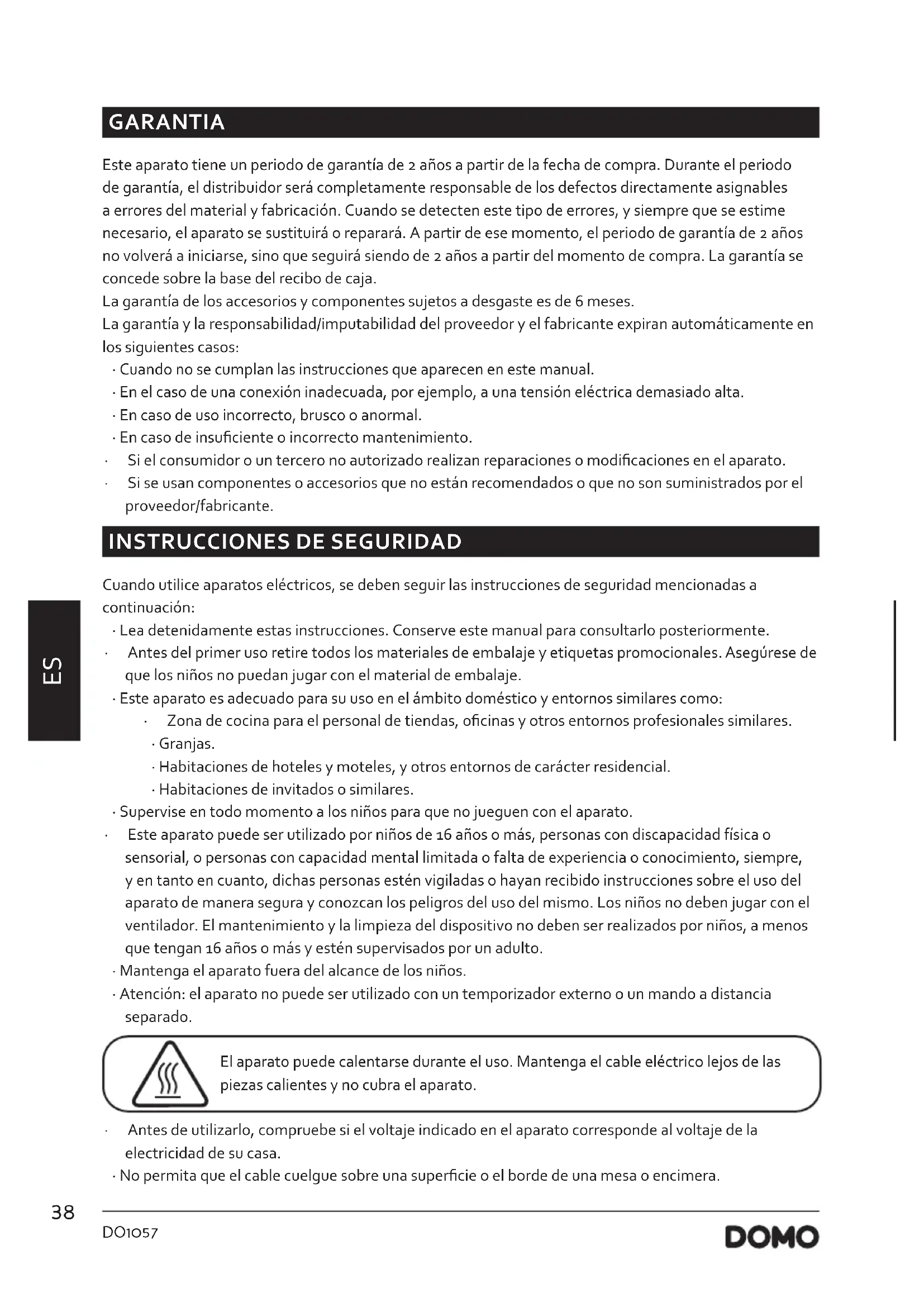 Encuentra gratis el manual del aparato DO1057 DOMO en formato PDF.