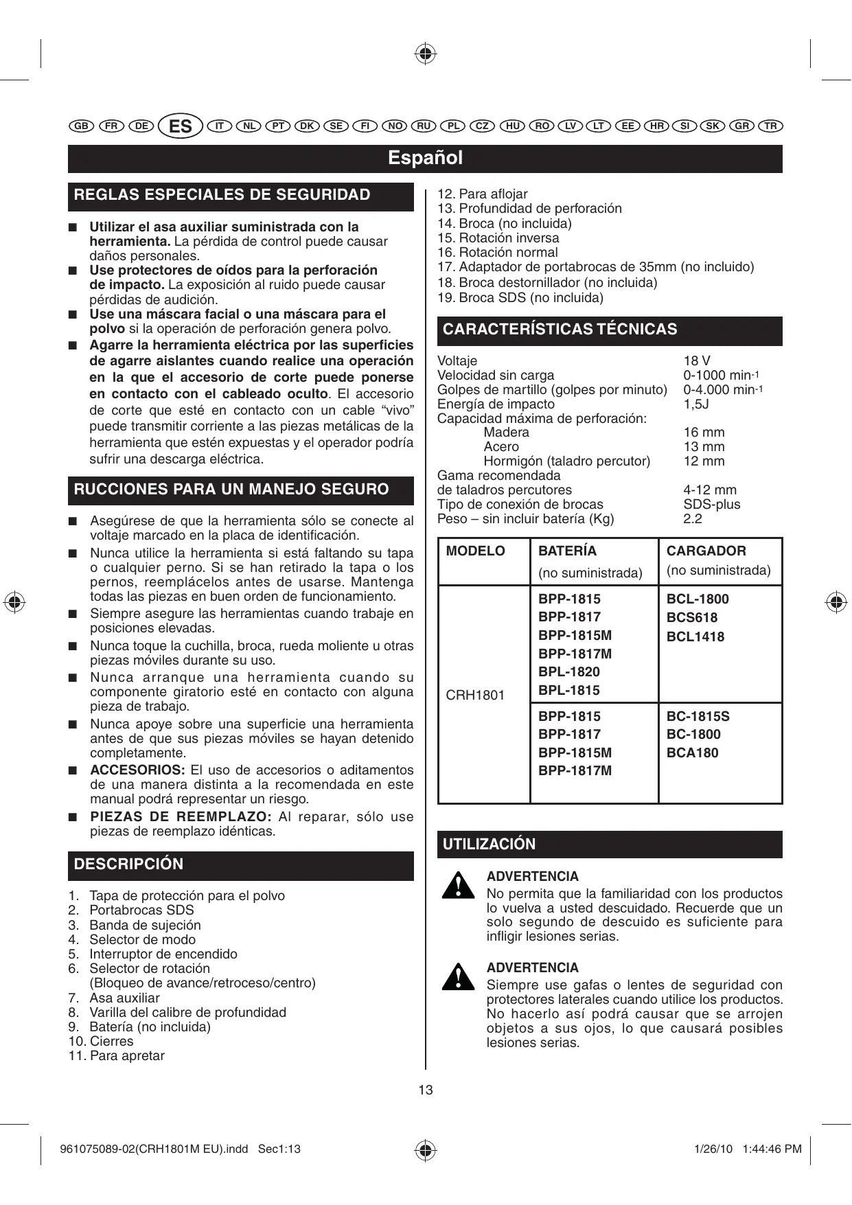 MANUAL DE USUARIO CRH1801 RYOBI