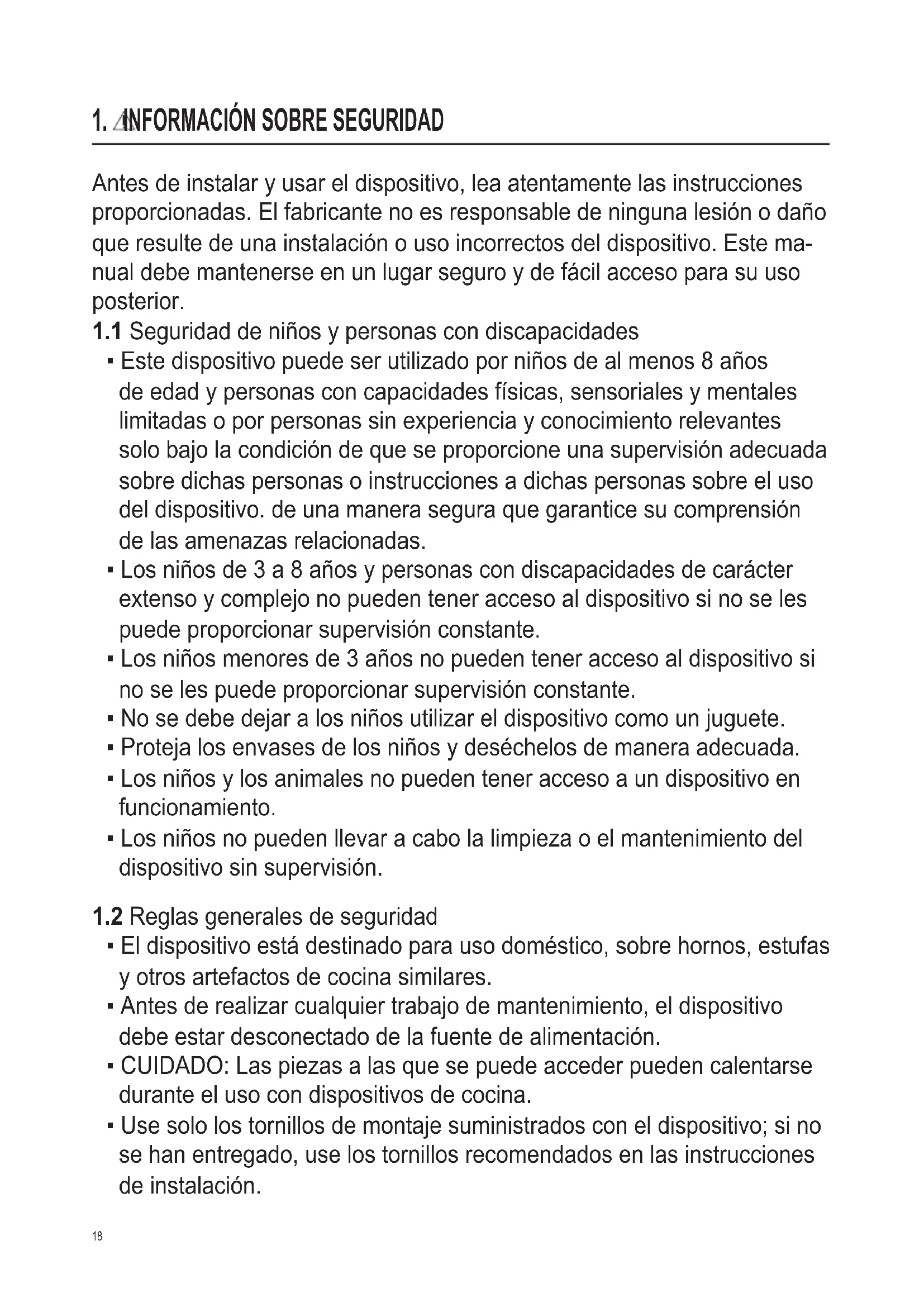 - El dispositivo está destinado para uso doméstico, sobre hornos, estufas y otros artefactos de cocina similares.