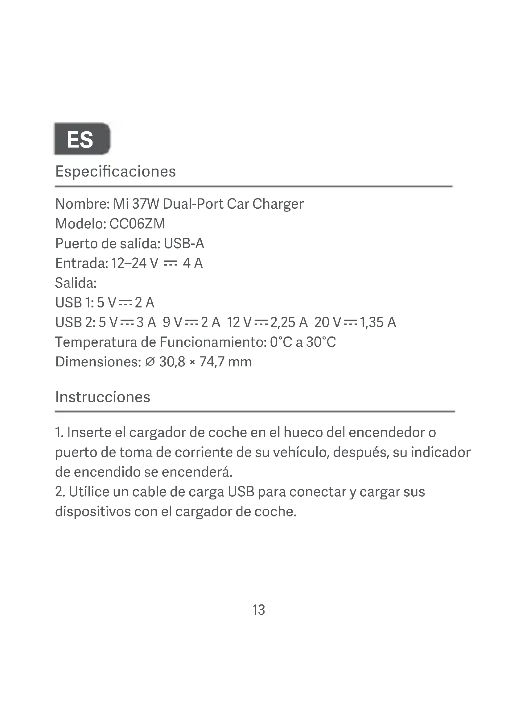 Mi 37W DualPort Car Charger - Cargador de batería Xiaomi - Manual de uso y guía de instrucciones gratis