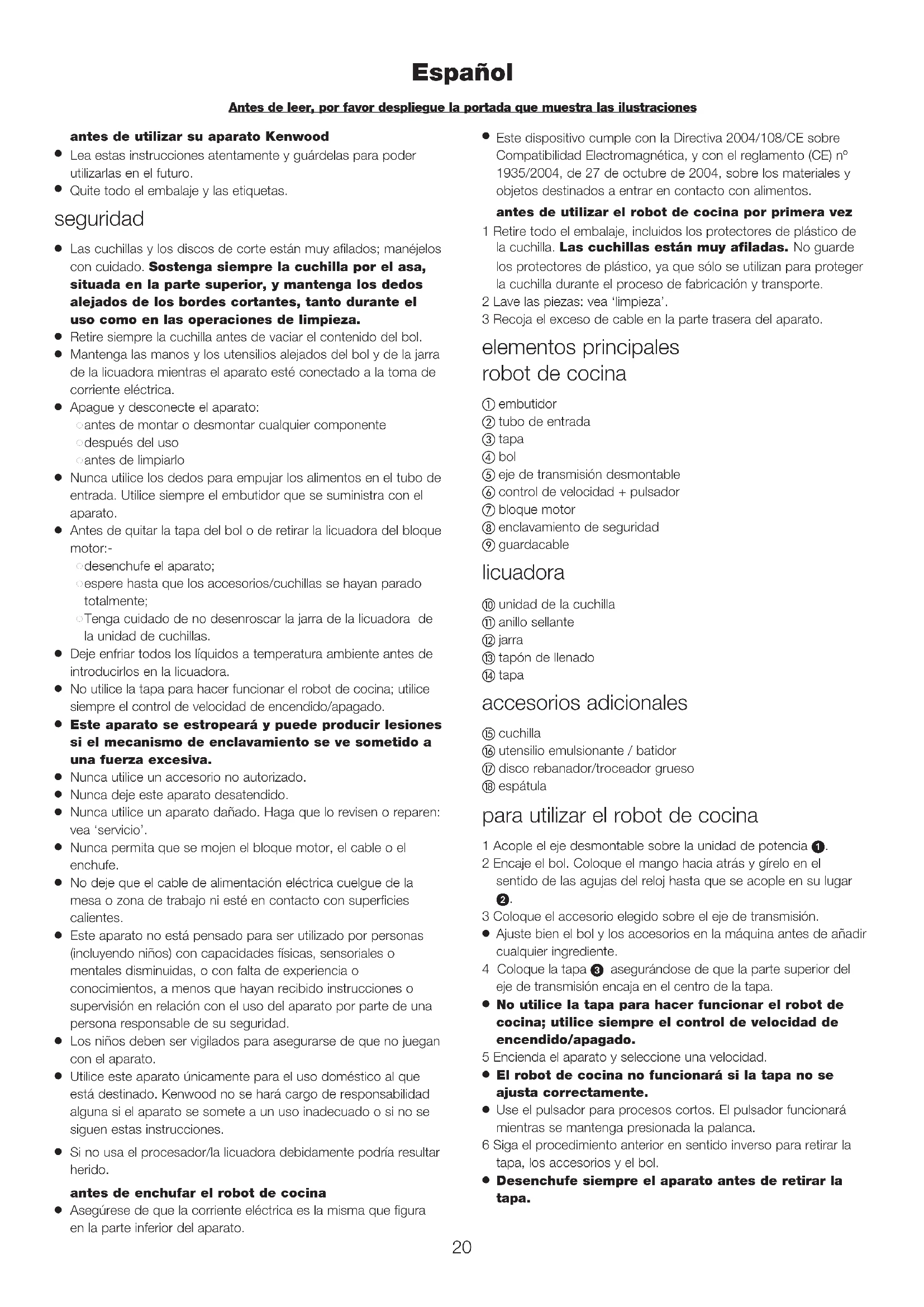 Si no usa el procesador/la licuadora debidamente podría resultar herido. antes de enchufar el robot de cocina