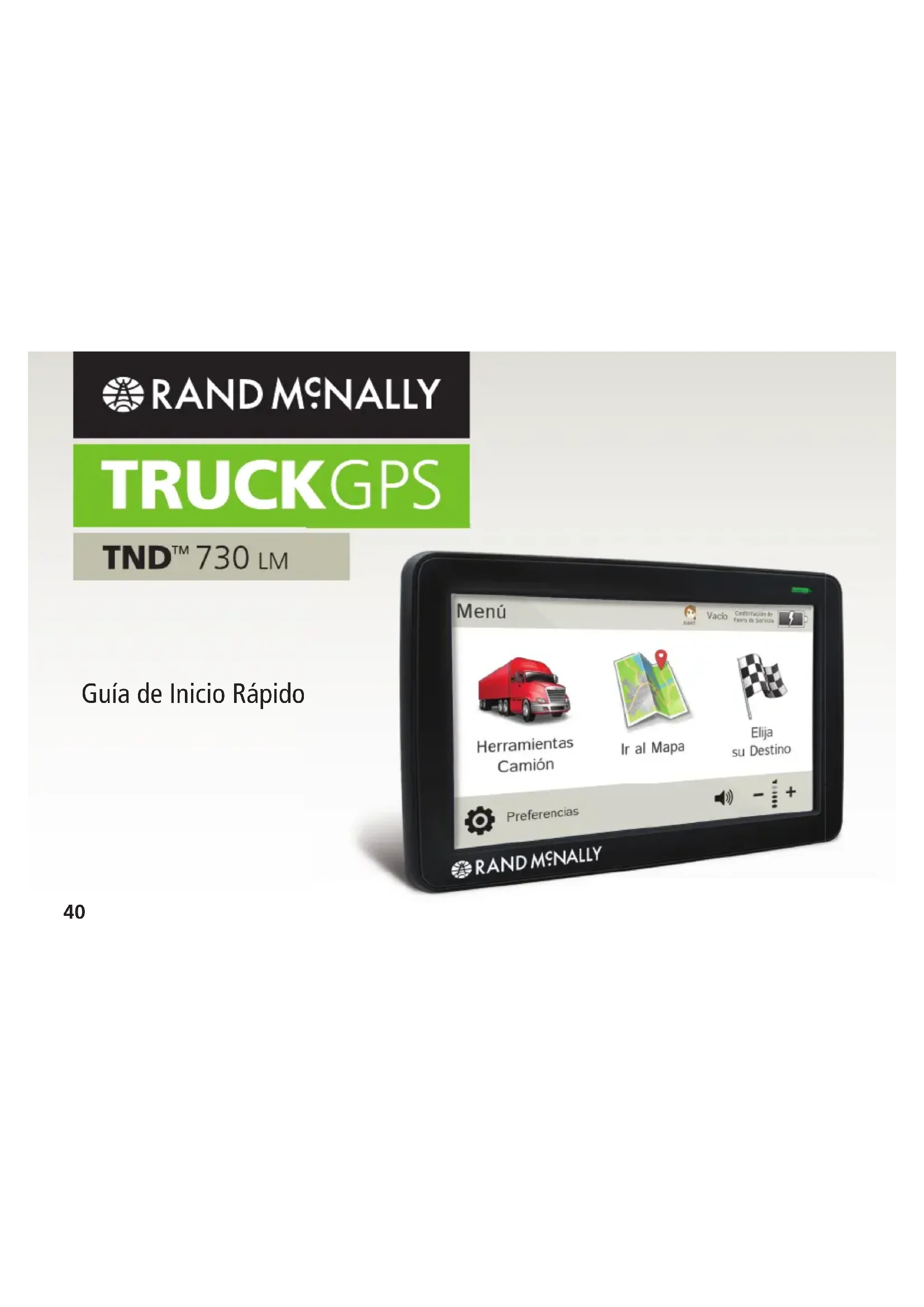730 LM. El manual de usuario se puede descargar del Rand McNally Dock, y también está disponible en la página web www.randmcnally.com/support. Rand McNally Dock