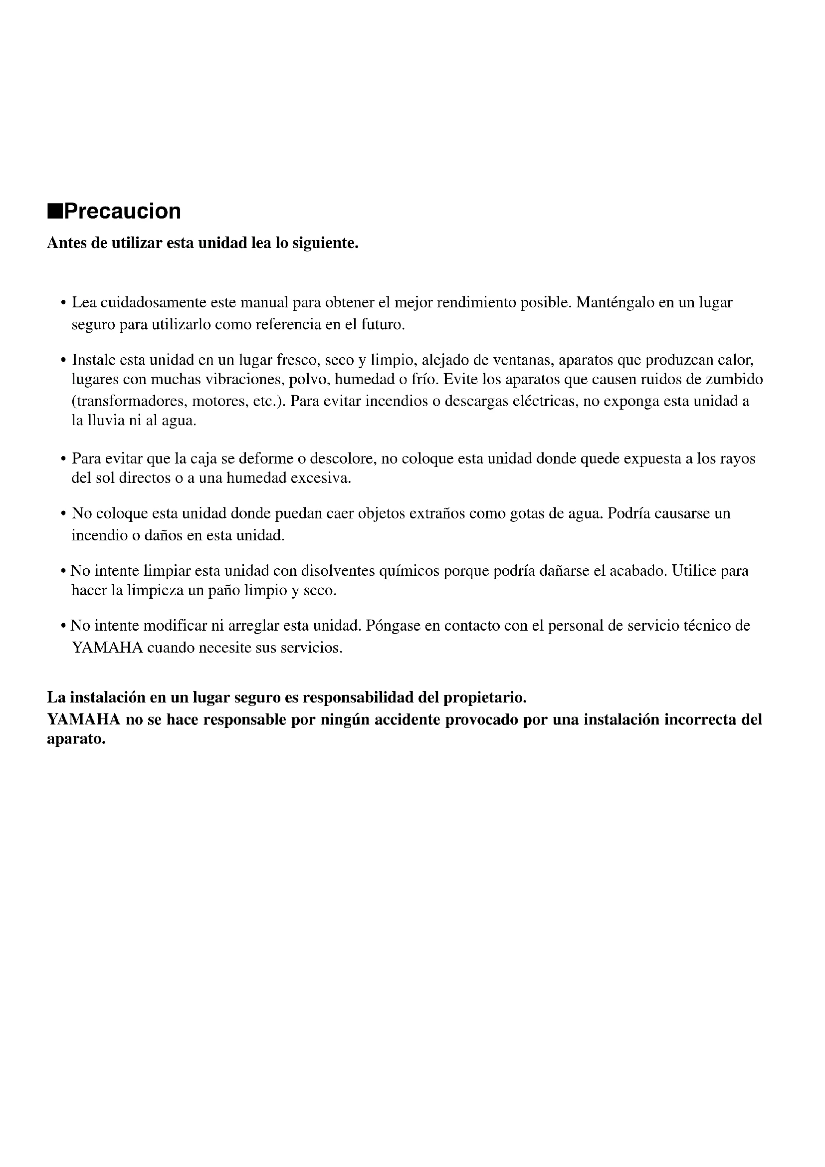 - Instale esta unidad en un lugar fresco, seco y limpio, alejado de ventanas, aparatos que produzcan calor, lugares con muchas vibraciones, polvo, humedad o frío. Evite los aparatos que causen ruidos de zumbido (transformadores, motores, etc.). Para evitar incendios o descargas eléctricas, no exponga esta unidad a la lluvia ni al agua.
