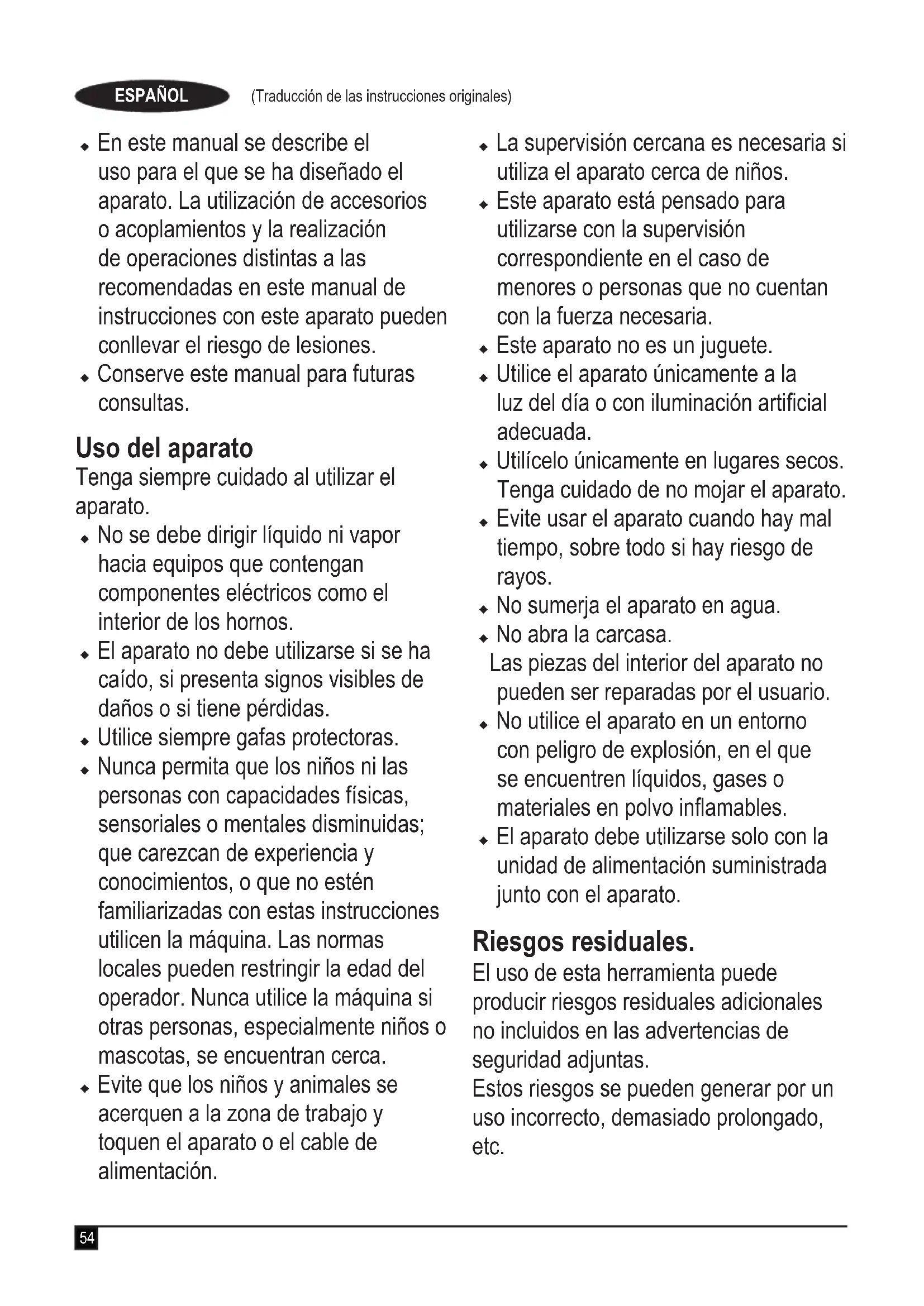 No exponga el aparato a la lluvia ni a una humedad elevada.58 (Traducción de las instrucciones originales) ESPAÑOL