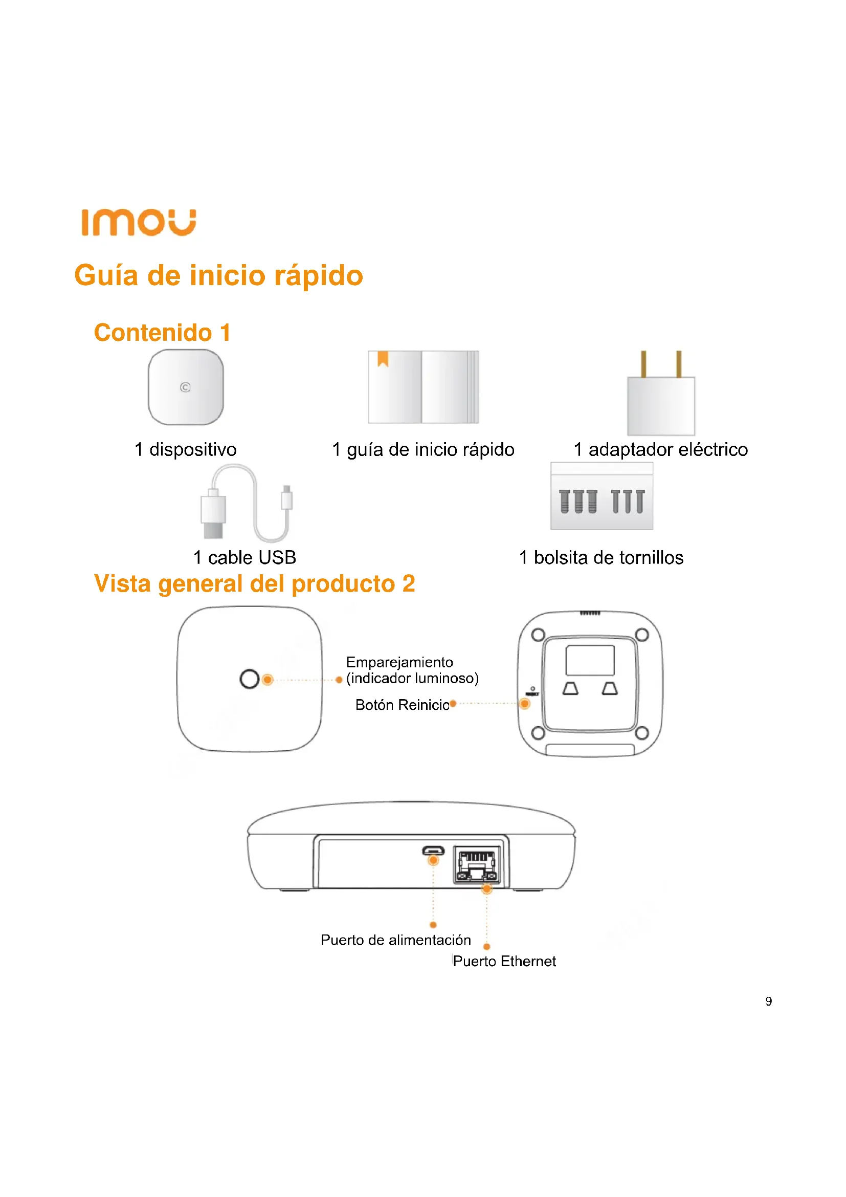 1 dispositivo 1 guía de inicio rápido 1 adaptador eléctrico