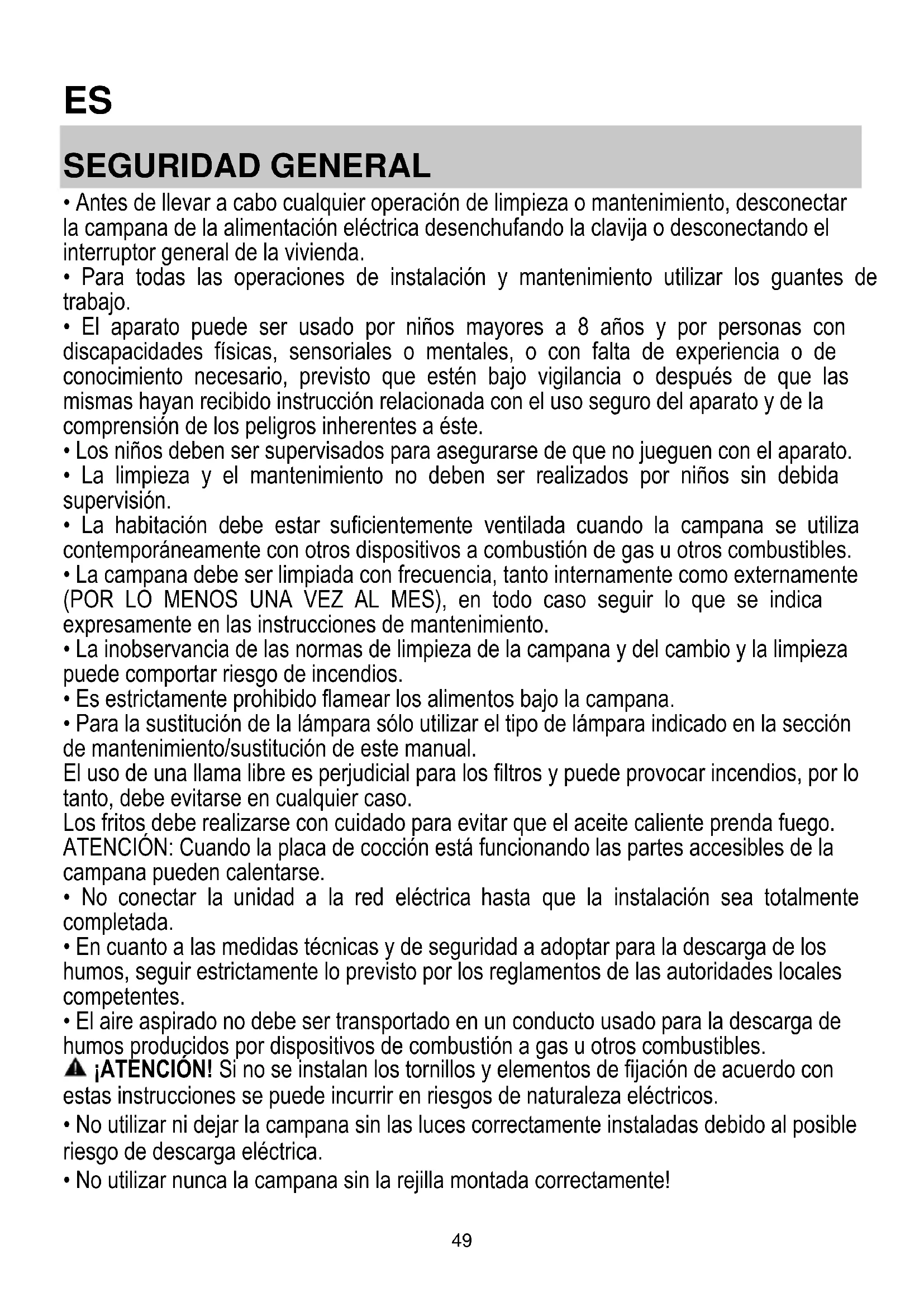 - No utilizar nunca la campana sin la rejilla montada correctamente!50