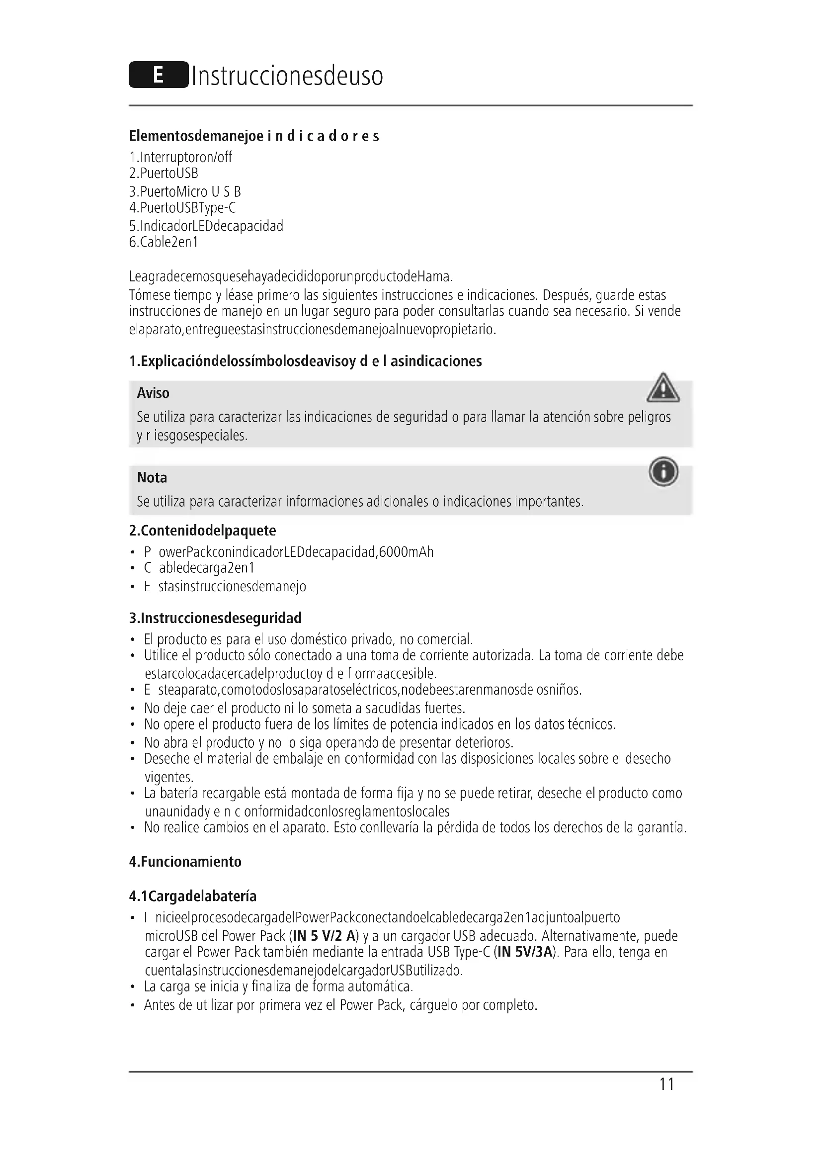 LED6S 00183361 - Batería portátil HAMA - Manual de uso y guía de instrucciones gratis