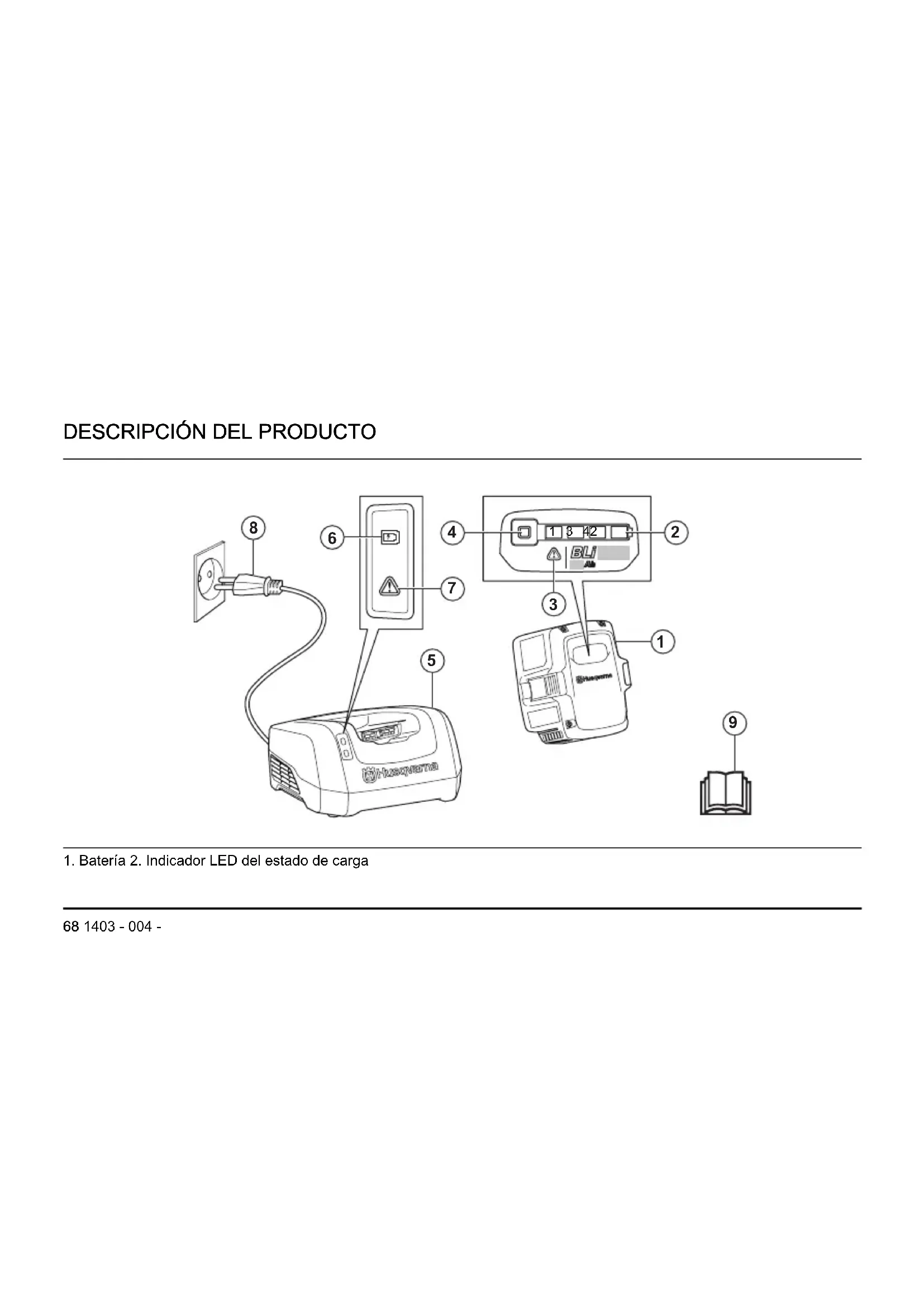 1. Batería 2. Indicador LED del estado de carga
