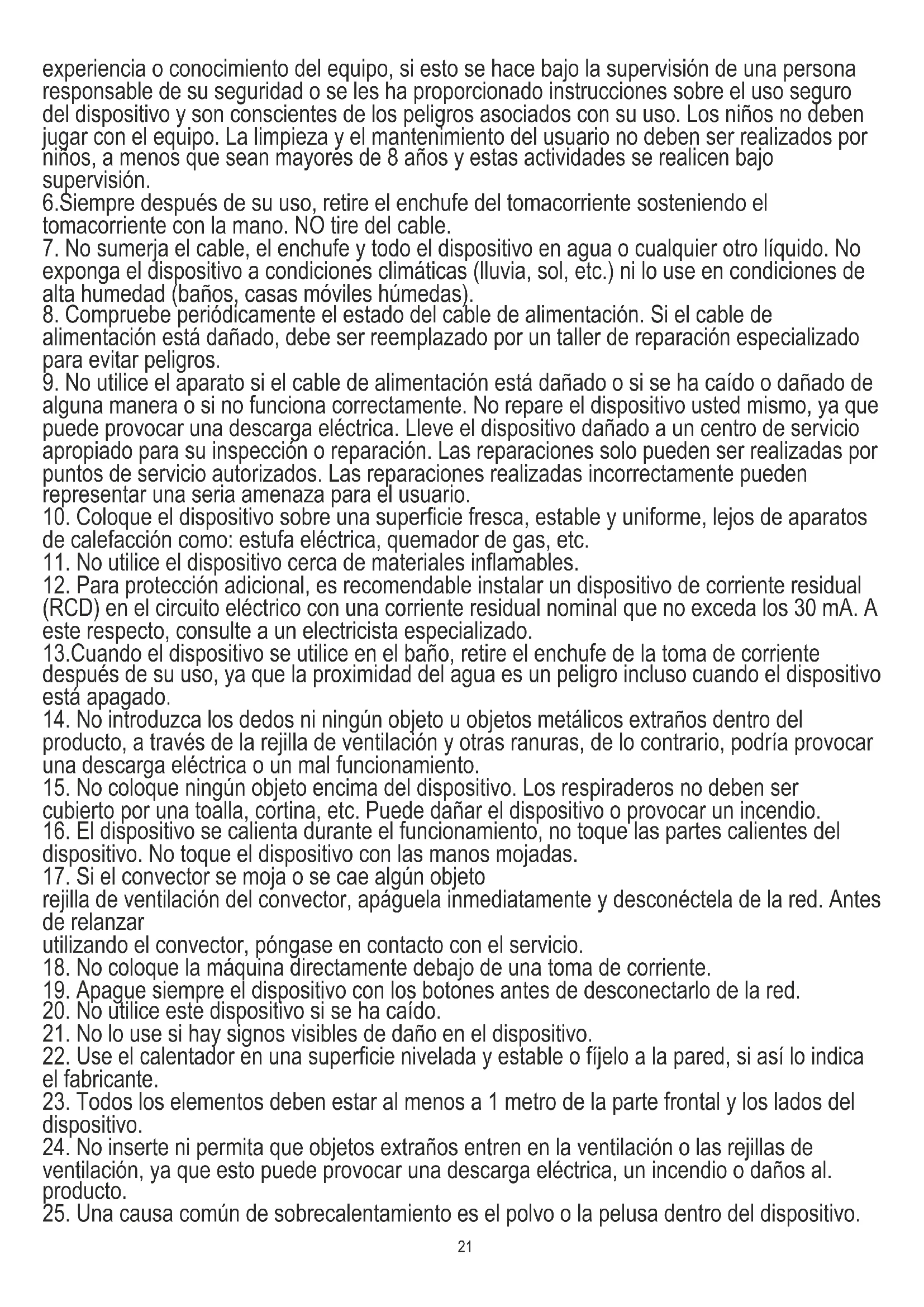 17. Si el convector se moja o se cae algún objeto