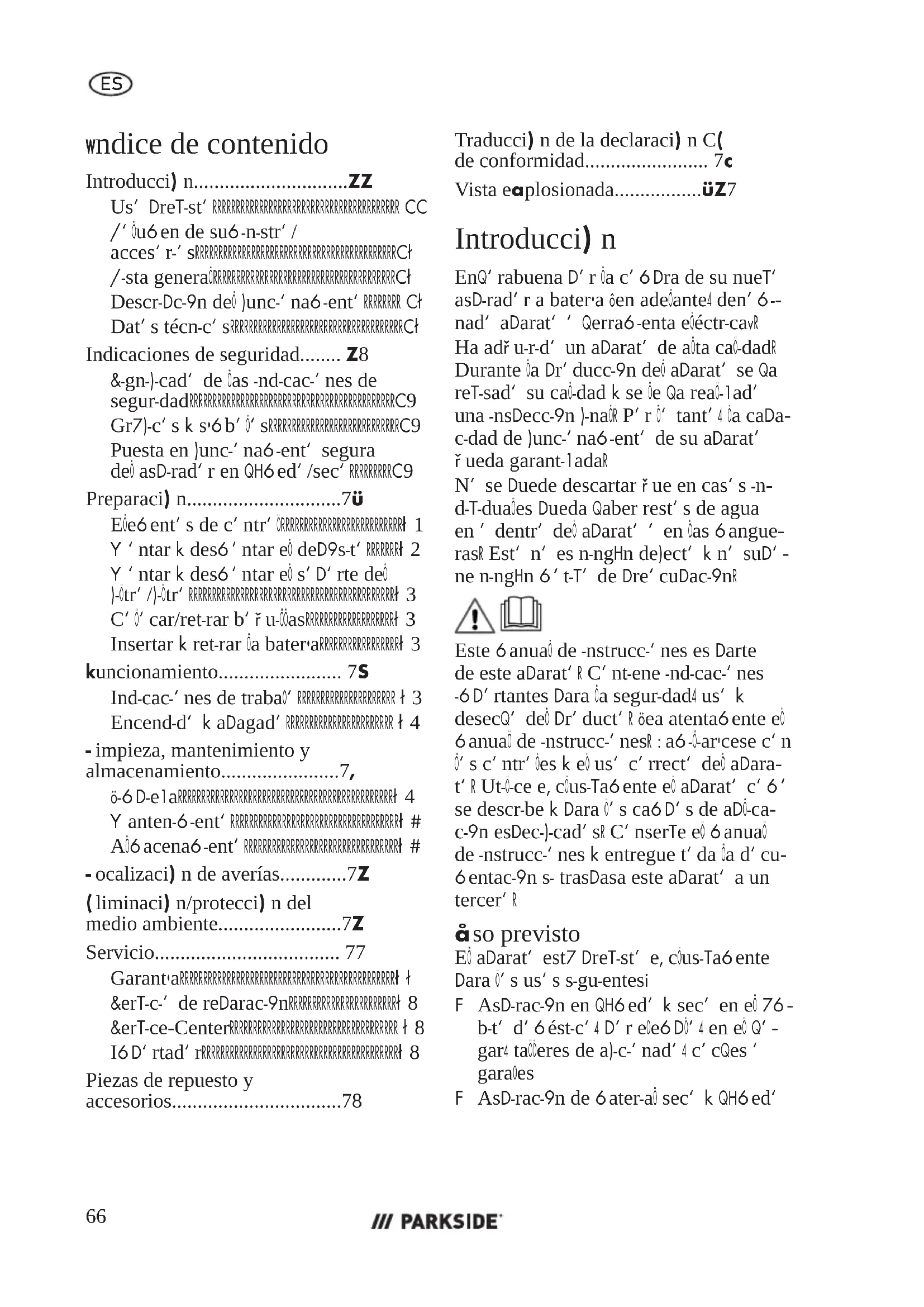 - Piezas de repuesto y accesorios p. 78