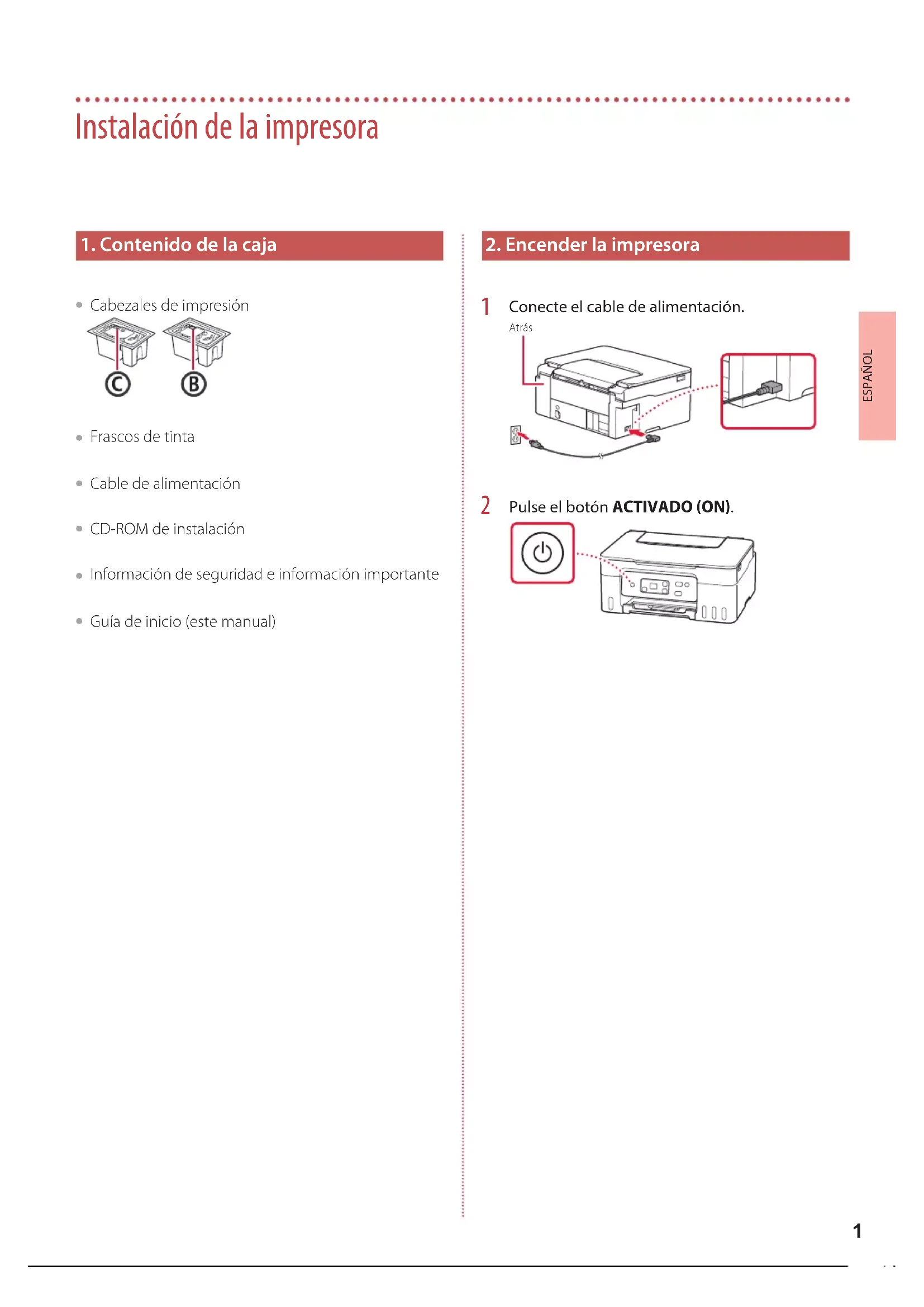 Pulse el botón ACTIVADO (ON).2 Instalación de la impresora