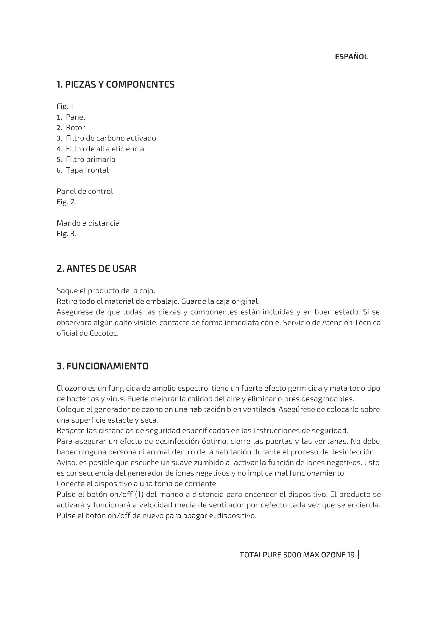 MANUAL DE USUARIO TotalPure 5000 Max Ozone CECOTEC