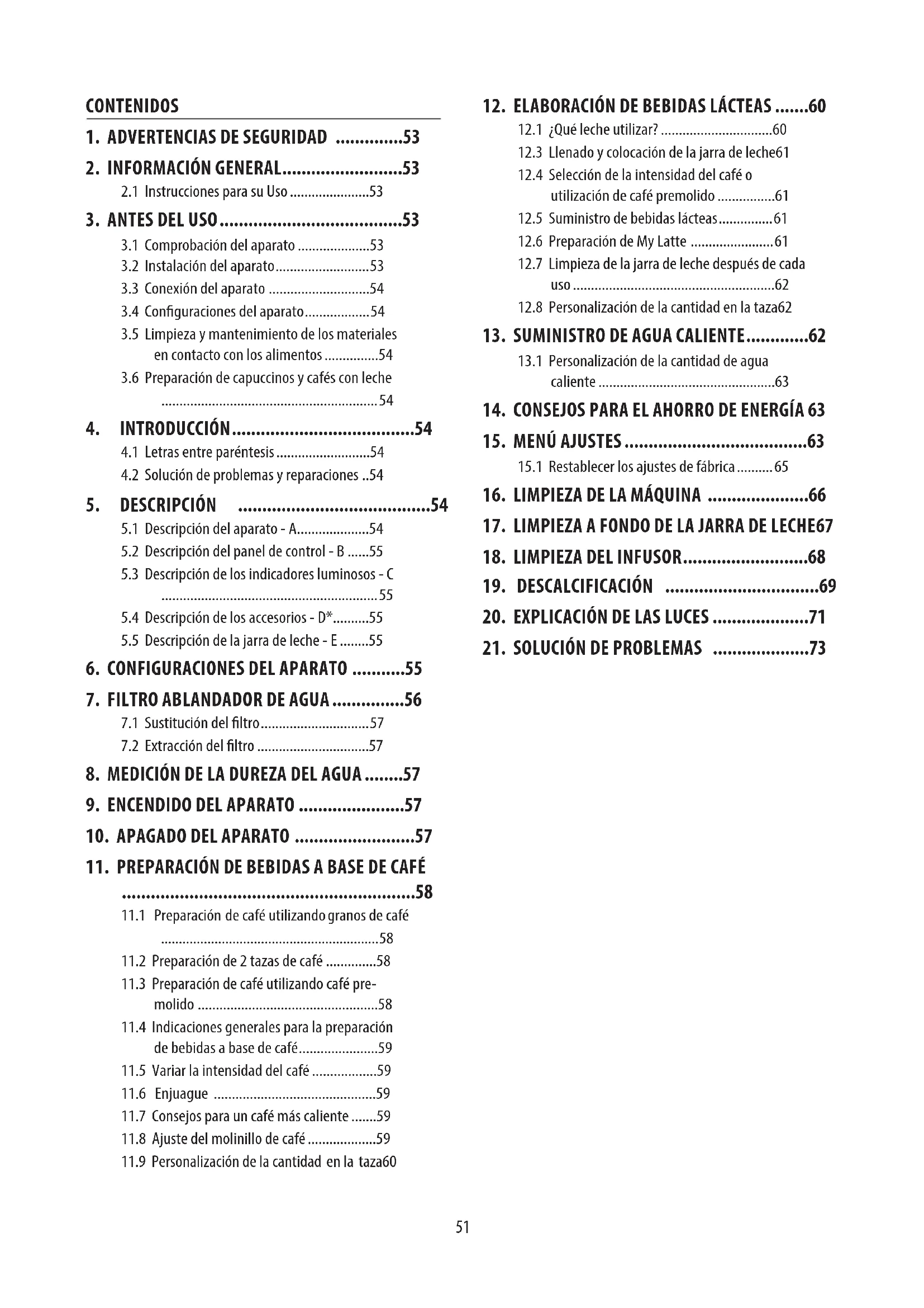 11.5 Variar la intensidad del café ..................59