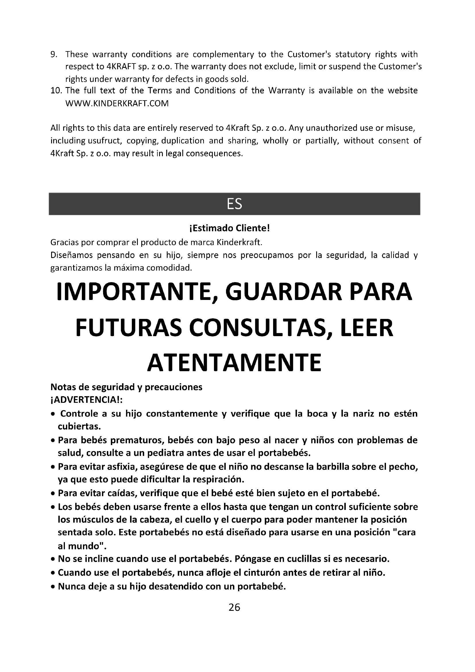 ¡Estimado Cliente! Gracias por comprar el producto de marca Kinderkraft. Diseñamos pensando en su hijo, siempre nos preocupamos por la seguridad, la calidad y garantizamos la máxima comodidad.