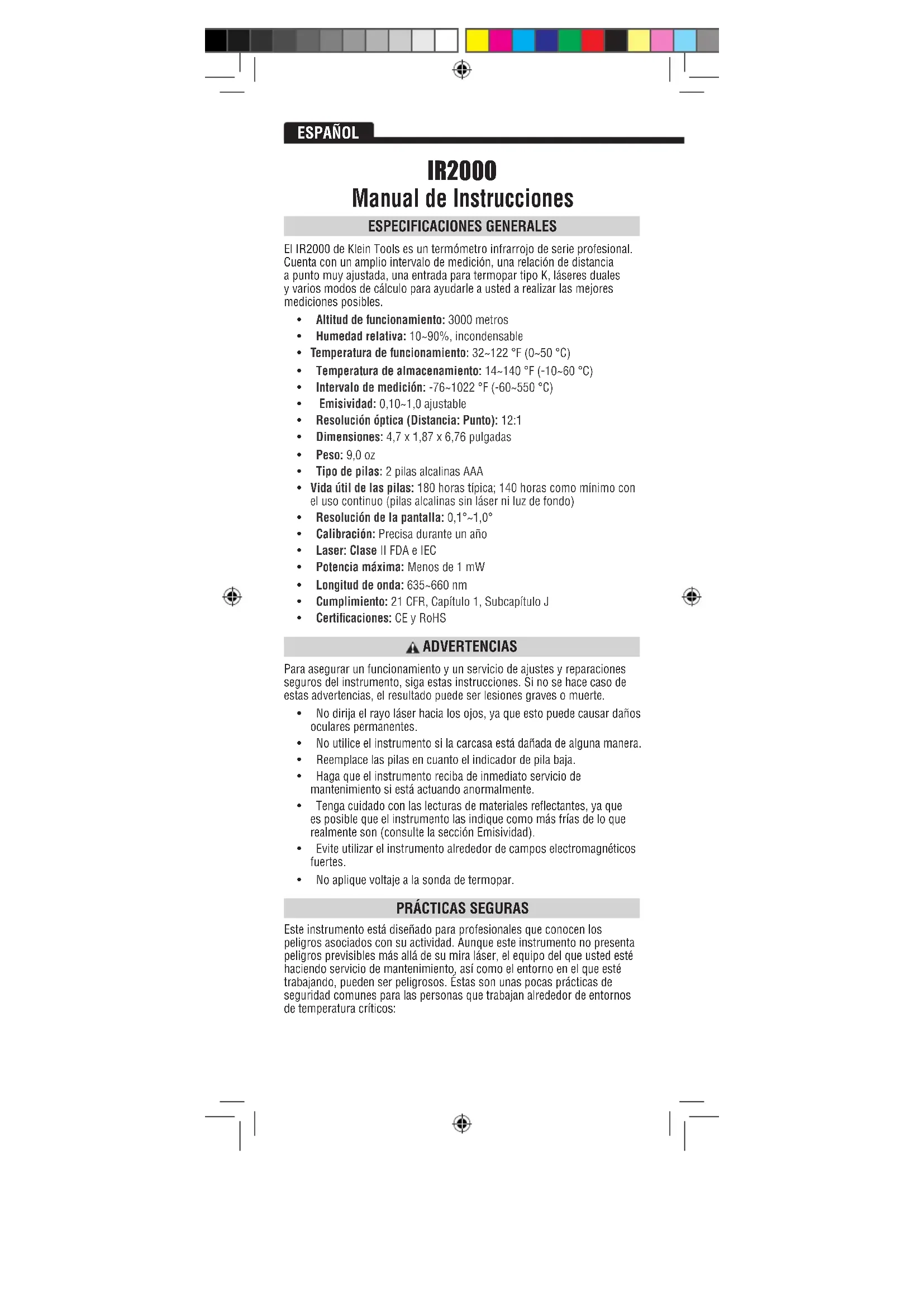 MANUAL DE USUARIO IR2000 Klein Tools