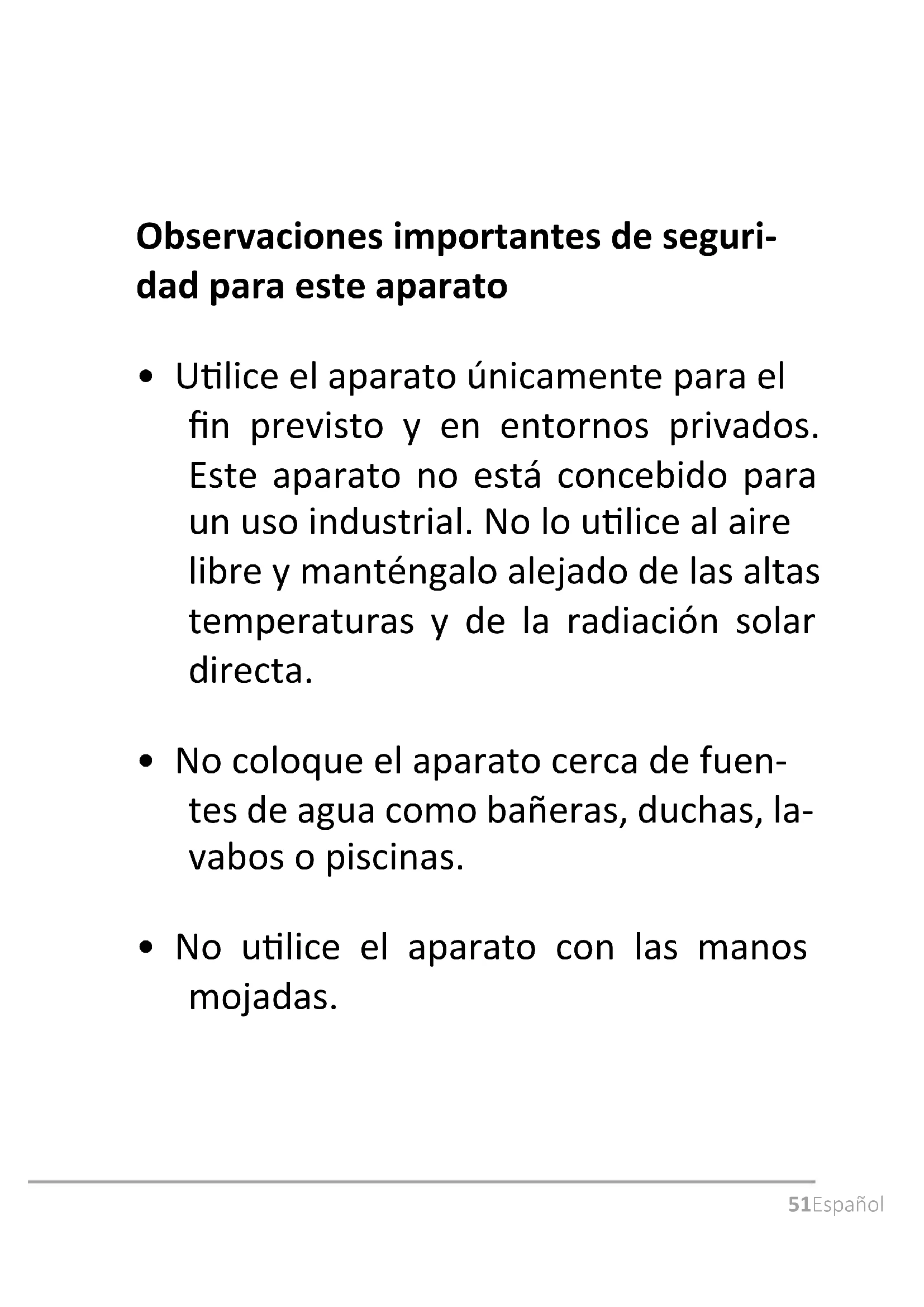- Ulice el aparato únicamente para el n previsto y en entornos privados. Este aparato no está concebido para un uso industrial. No lo ulice al aire libre y manténgalo alejado de las altas temperaturas y de la radiación solar directa.