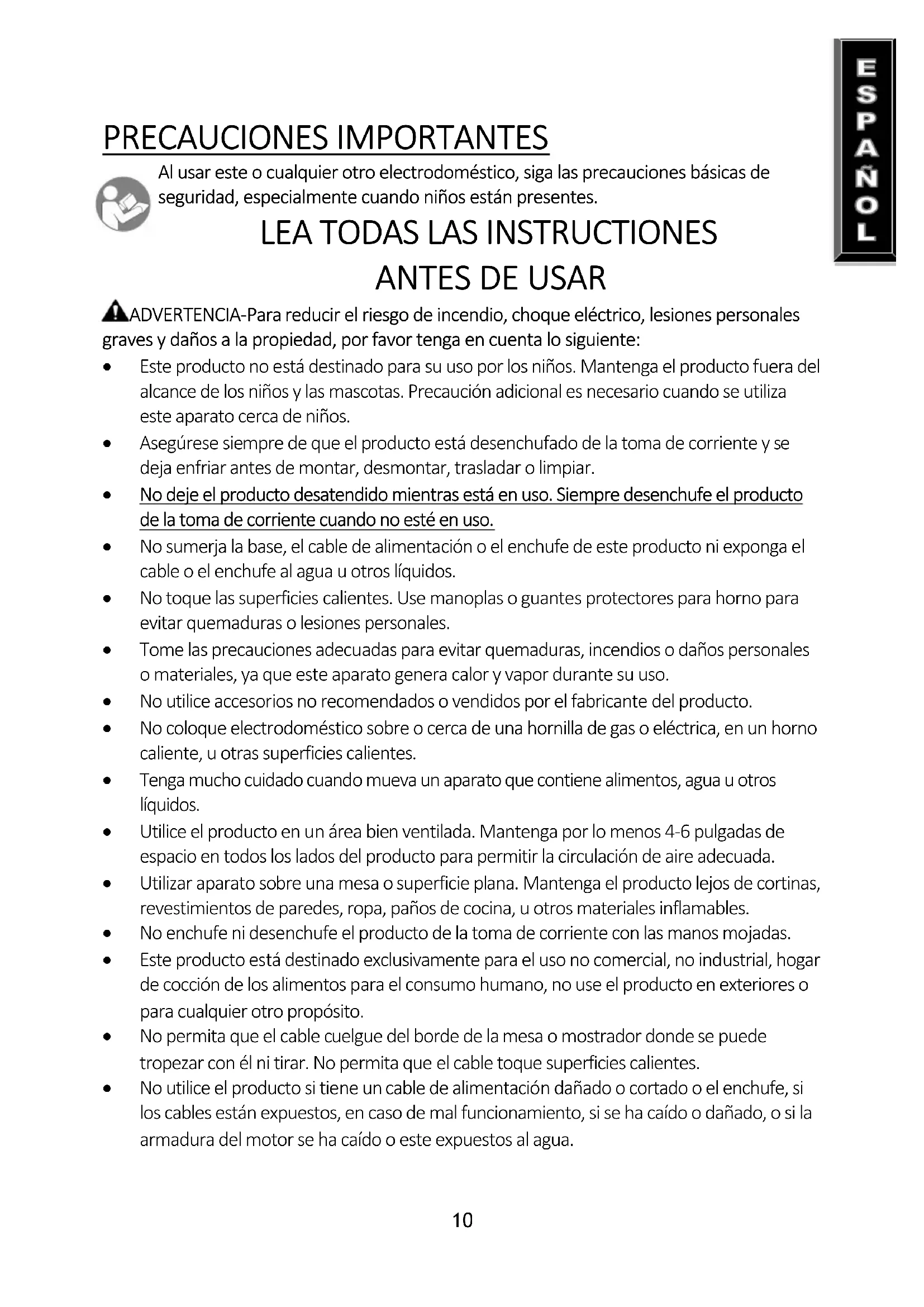 - Este producto está destinado exclusivamente para el uso no comercial, no industrial, hogar de cocción de los alimentos para el consumo humano, no use el producto en exteriores o para cualquier otro propósito.