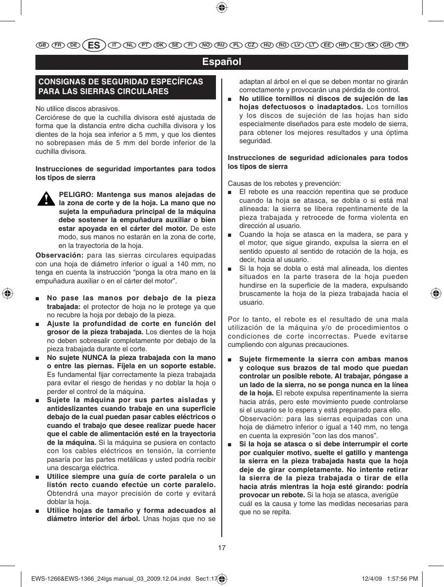 CONSIGNAS DE SEGURIDAD ESPECÍCAS PARA LAS SIERRAS CIRCULARES
