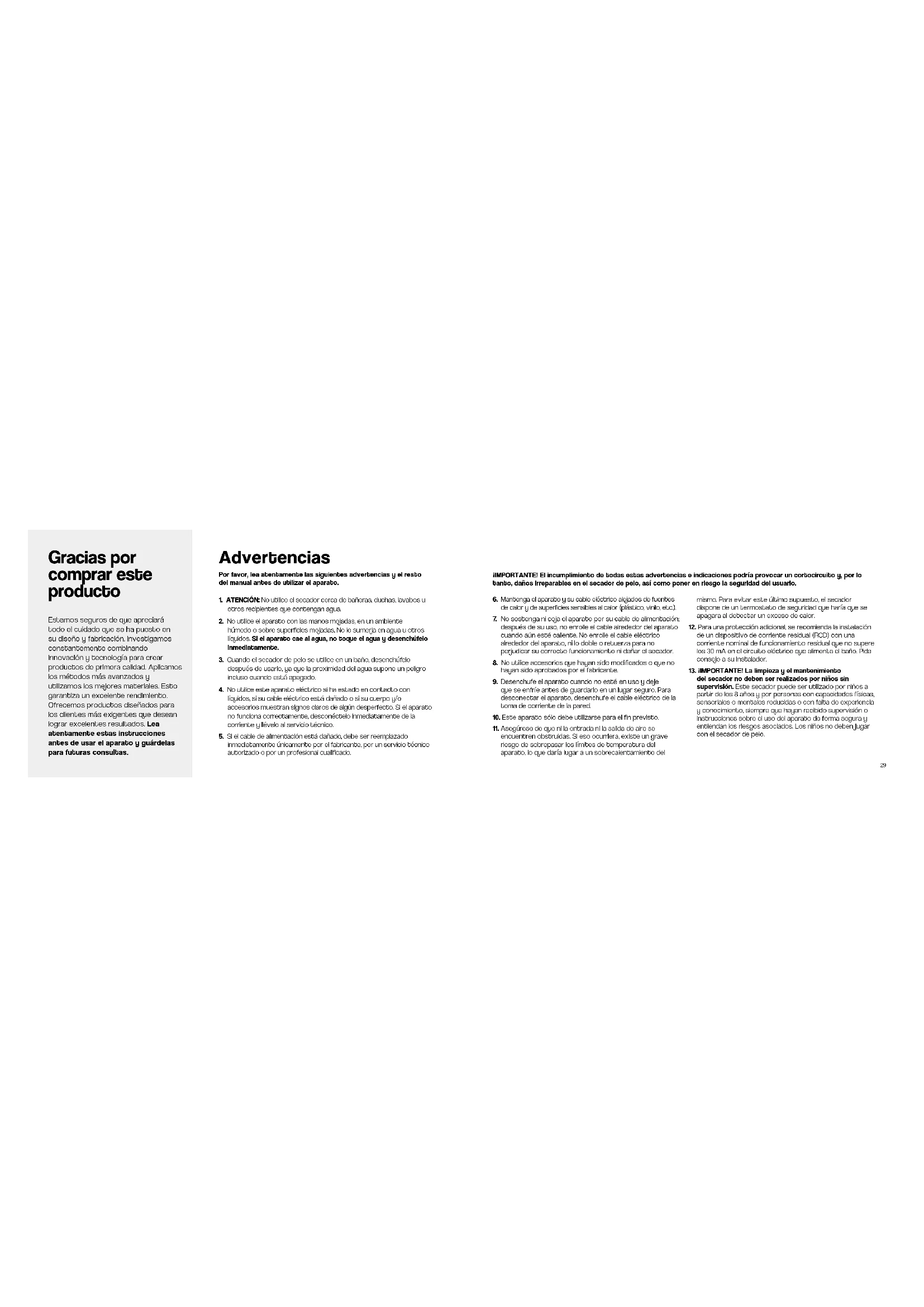 1. ATENCIÓN: No utilice el secador cerca de bañeras, duchas, lavabos u