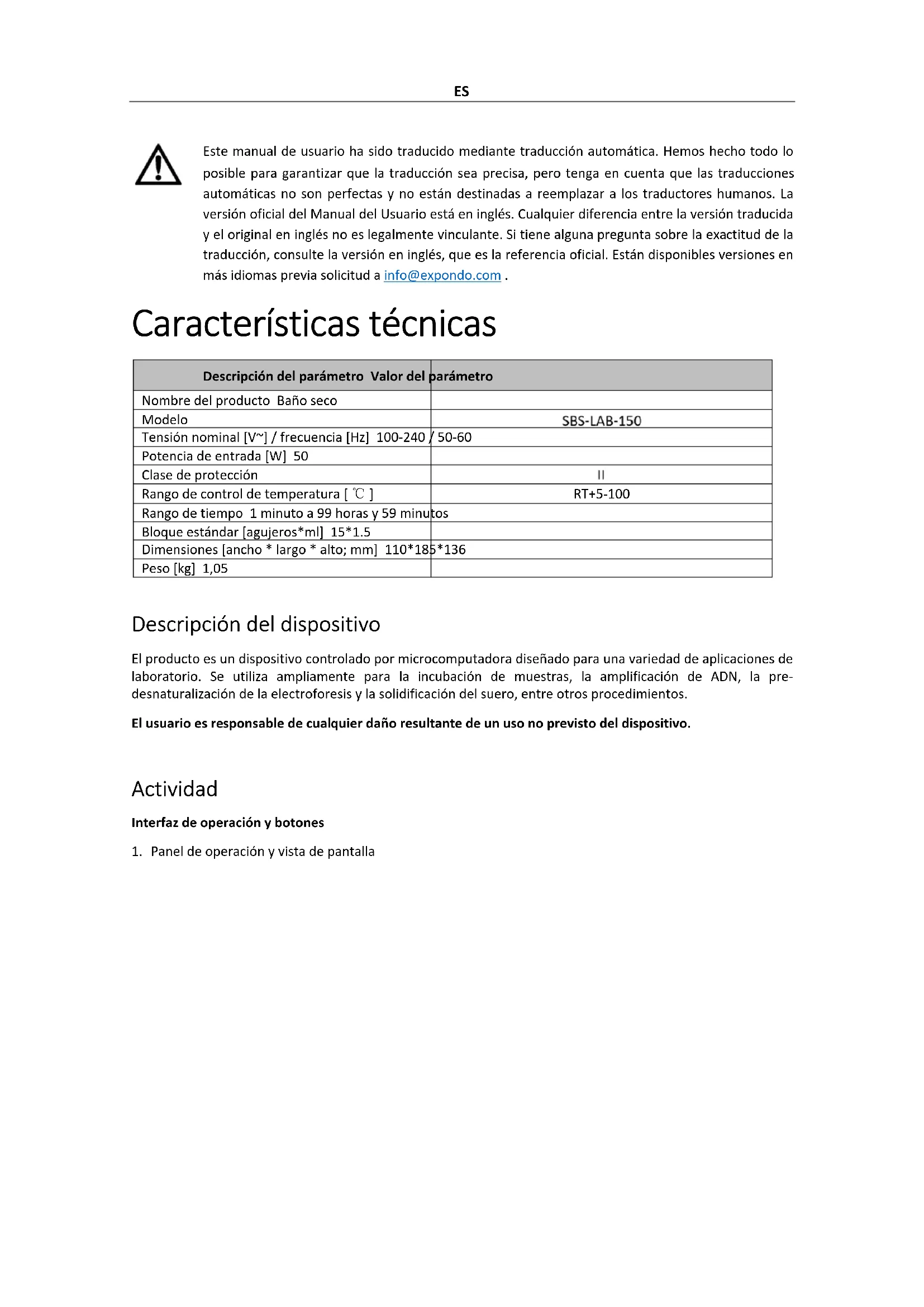 1. Panel de operación y vista de pantallaES