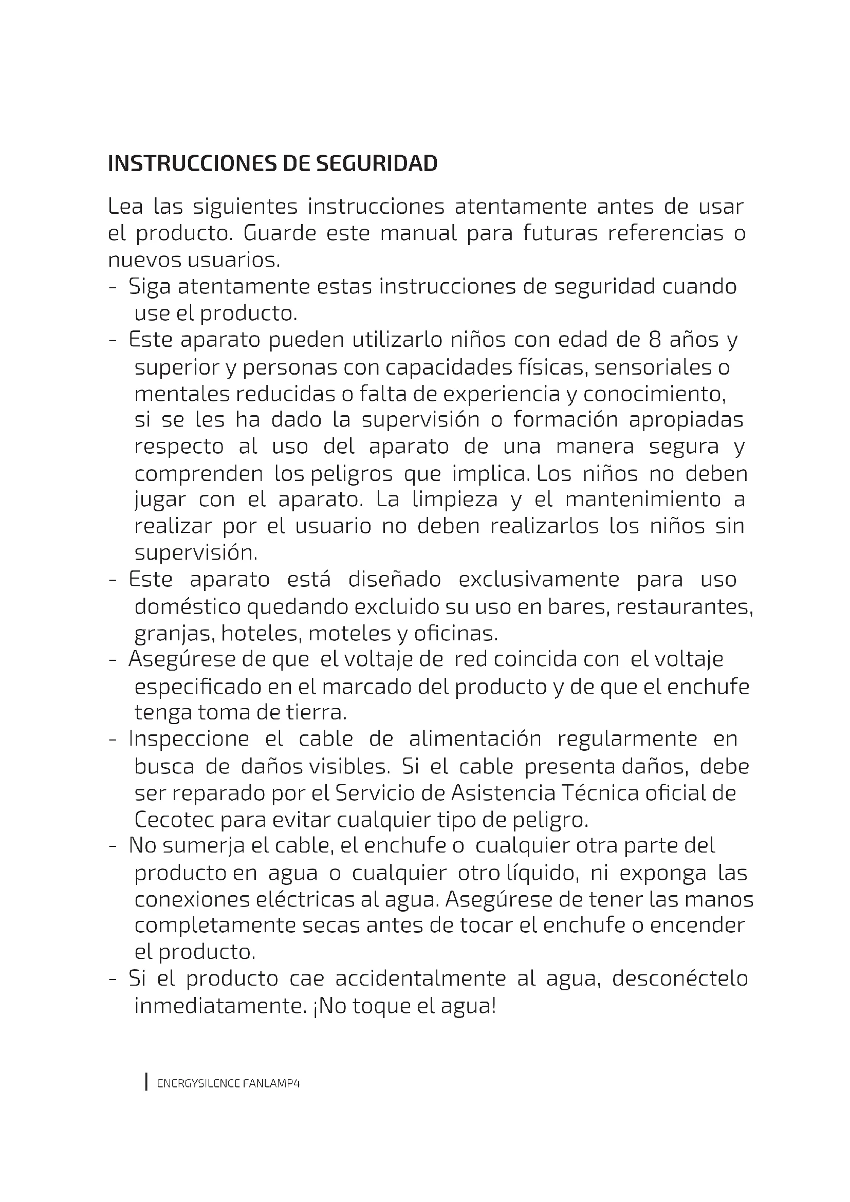 MANUAL DE USUARIO EnergySilence FanLamp CECOTEC