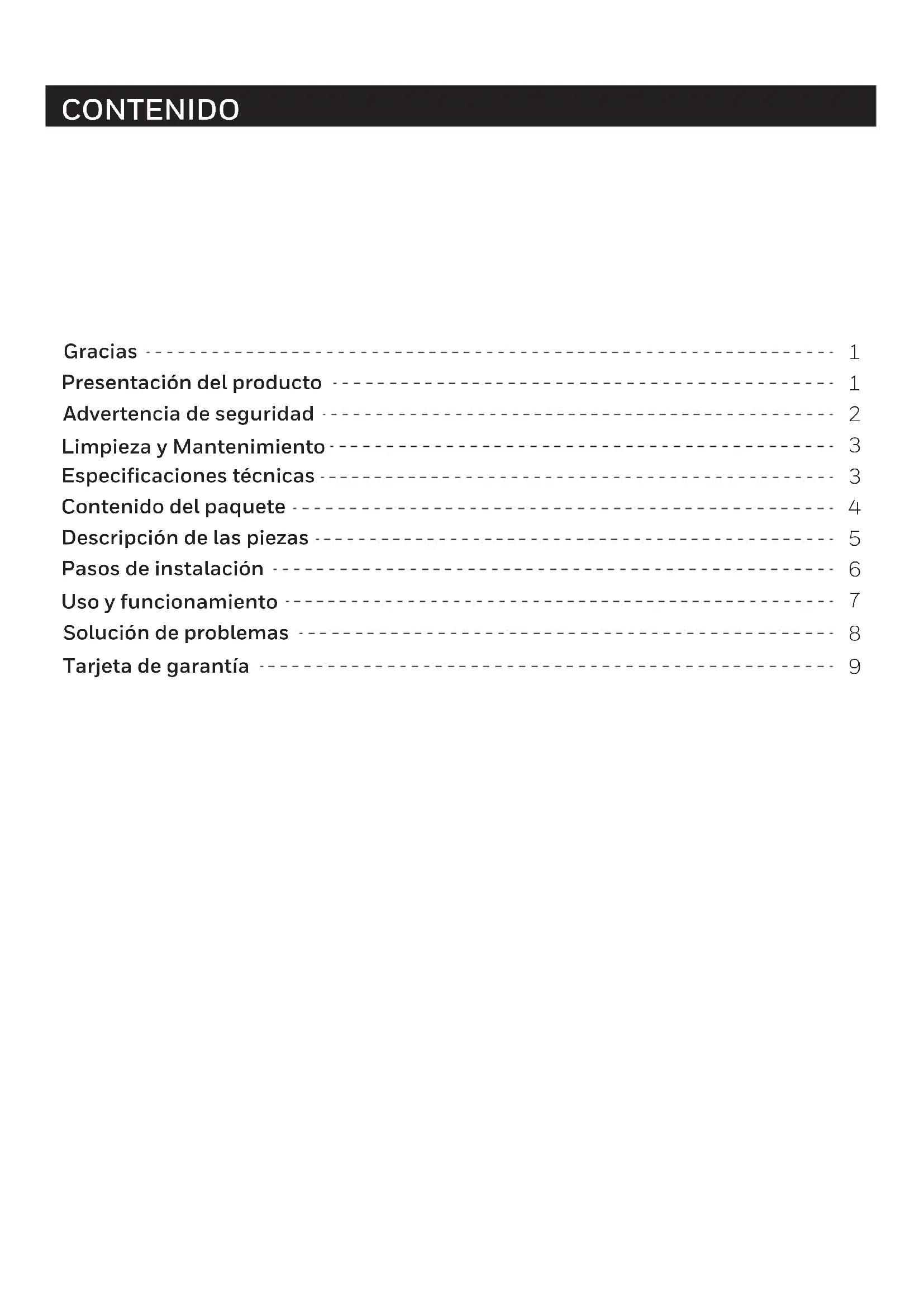 Información de devolución o cambio Complete la información del pedido, del producto y del usuario a continuación y devuélvala en el paquete para su recogida. Nombre del producto:................................................................................................................................ Número de modelo:..................................................................................................................................... Fecha de compra:......................................................................................................................................... Comprado de:................................................................................................................................................. Nombre del cliente:..................................................................................................................................... Número de teléfono:................................................................................................................................... Email:.................................................................................................................................................................. Si tiene alguna pregunta, no dude en ponerse en contacto con nosotros. Huo Ming Technology Guangdong Co., Ltd. Room 3501, Haijunda Plaza, Guizhou Avenue, Foshan, China Servicio al Cliente : support@honeywellsmartlighting.com Servicio al Cliente : UK: +86 400 8787 805 Lun - Vie: 9:00am - 5:00pm (GMT) EU: +86 400 8787 805 Lun - Vie: 9:00am - 5:00pm (GMT+2) US & Canada: +1 800 5608 962 Lun - Vie: 9:00am - 5:00pm (EST) Sitio web: honeywellsmartlighting.com Huo Ming Technology Guangdong Co., Ltd. garantiza que este producto está libre de defectos en materiales y mano de obra por un período de 2 años y es válido solo en los Estados Unidos, Canadá, Reino Unido, Alemania, Francia, España e Italia. Esta garantía solo cubre los productos que se instalaron correctamente, se mantuvieron correctamente y se operaron correctamente de acuerdo con las instrucciones proporcionadas. Esta garantía limitada no cubre fallas o dificultades de operación debido al uso y desgaste normal, accidente, abuso, uso indebido, alteración, aplicación incorrecta, instalación incorrecta o mantenimiento inadecuado. Recordatorio amable: Si necesita comunicarse con nosotros para obtener ayuda sobre cualquier problema con el producto, asegúrese de adjuntar la información y las fotos de su pedido del producto (si es necesario) para obtener una solución rápida. Notas de devolución y cambio IMPORTANTE: Si experimenta problemas relacionados con el producto, primero comuníquese con nuestro centro de atención al cliente. Podemos ayudar a resolver su problema antes de decidir devolver el producto. No intente desmontar el producto ni cambiar ninguna de las piezas o accesorios originales. Si lo hace, puede anular la garantía y causar daños al producto o lesiones personales. La garantía no cubre: