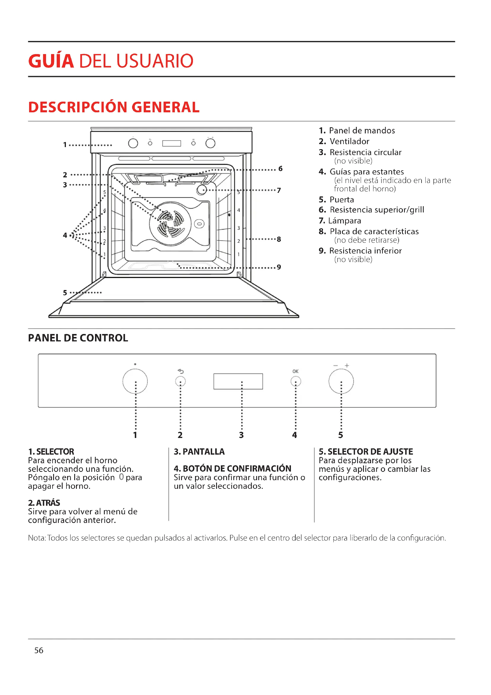 Nota: Todos los selectores se quedan pulsados al activarlos. Pulse en el centro del selector para liberarlo de la conguración.