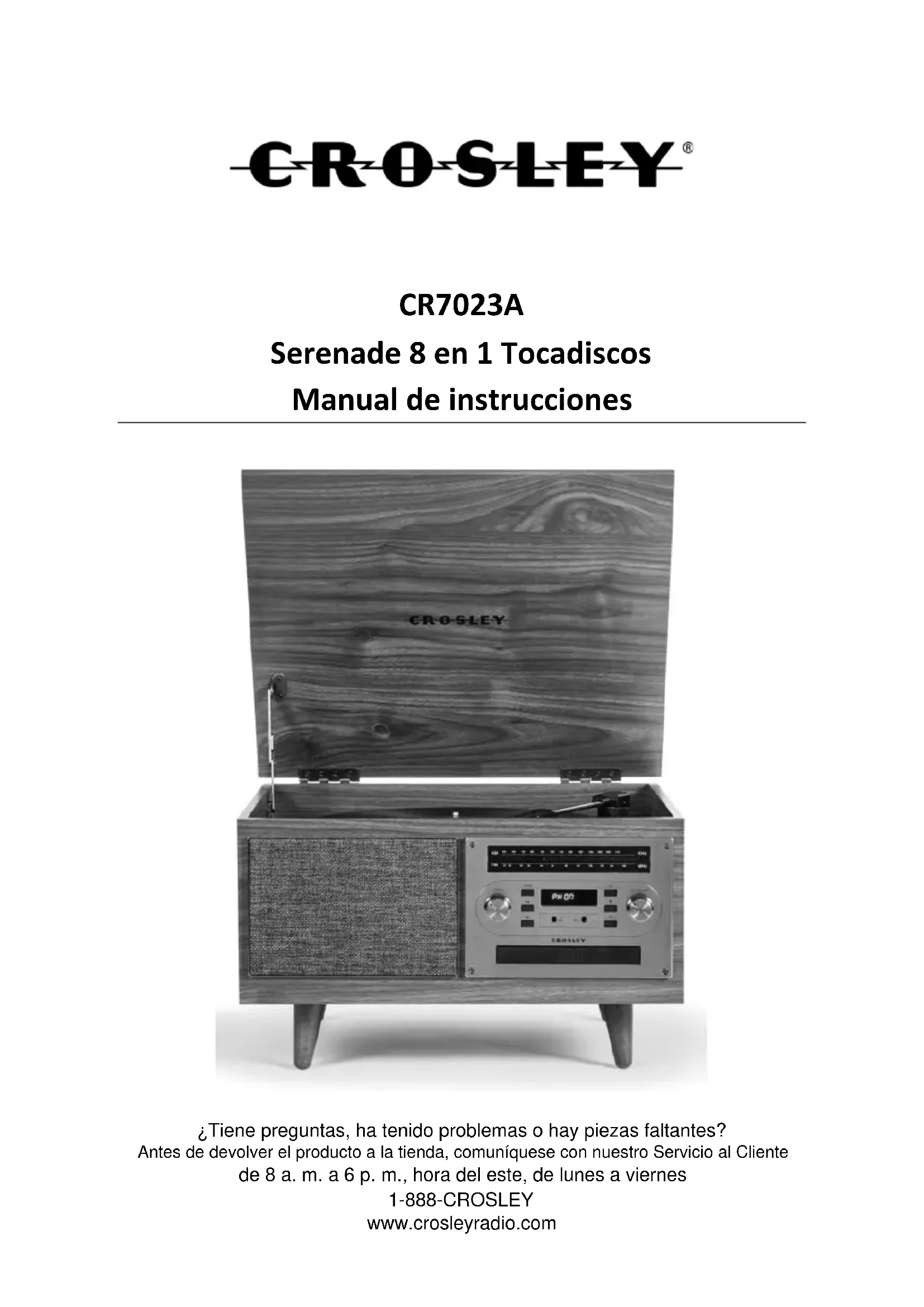 Serenade CR7023A - Tocadiscos Crosley - Manual de uso y guía de instrucciones gratis