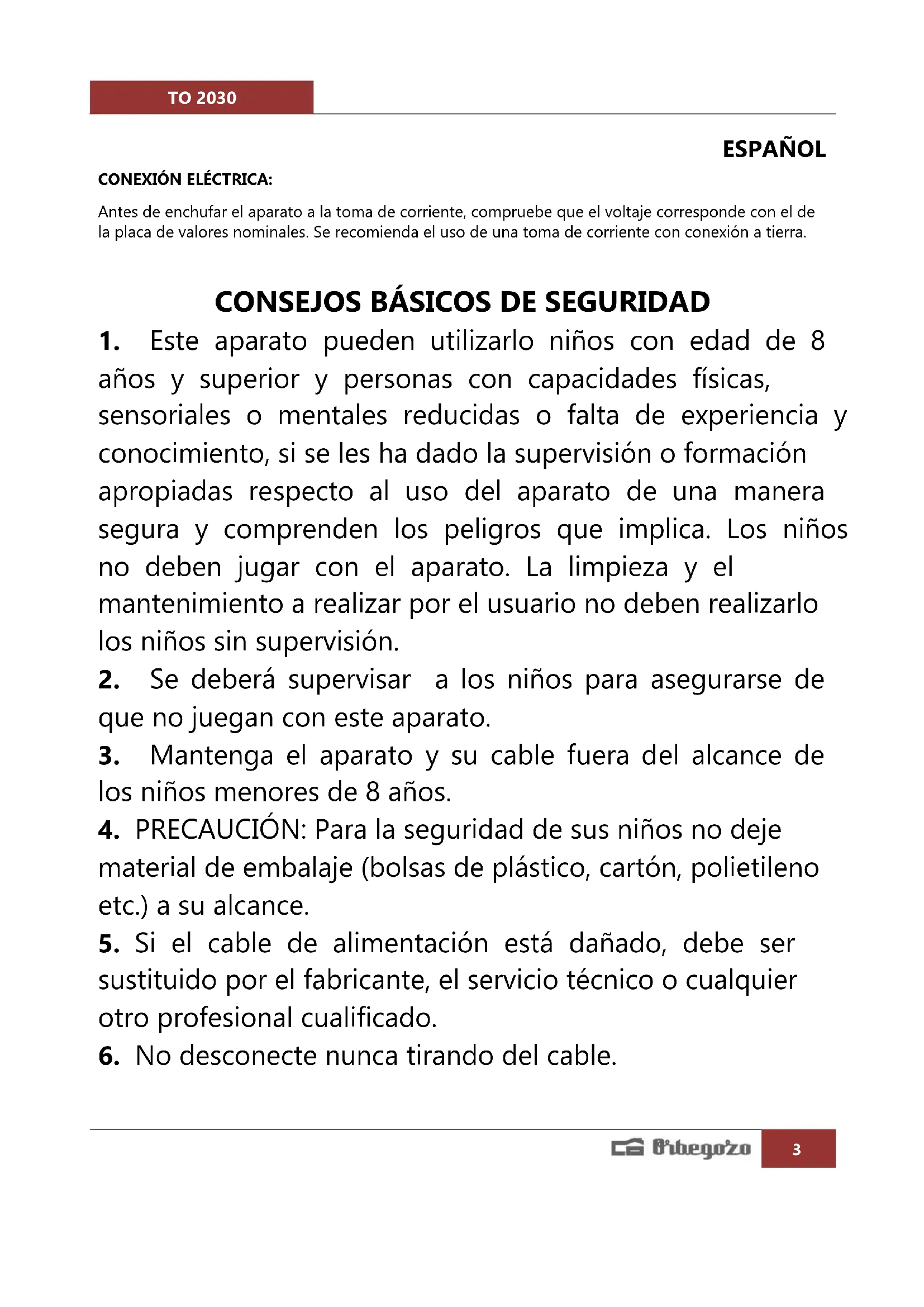 MANUAL DE USUARIO TO 2030 Orbegozo