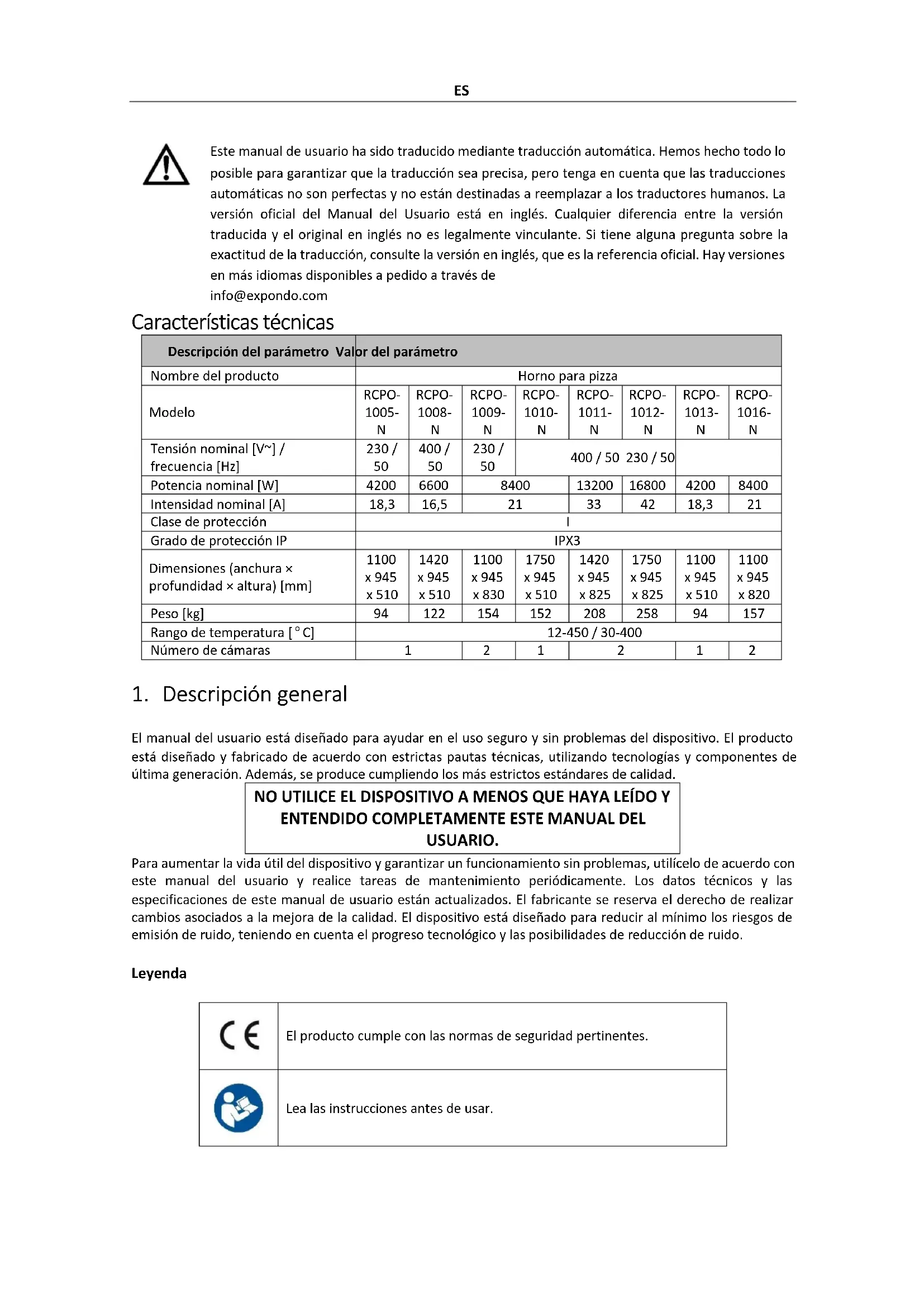MANUAL DE USUARIO RCPO1005N Royal Catering