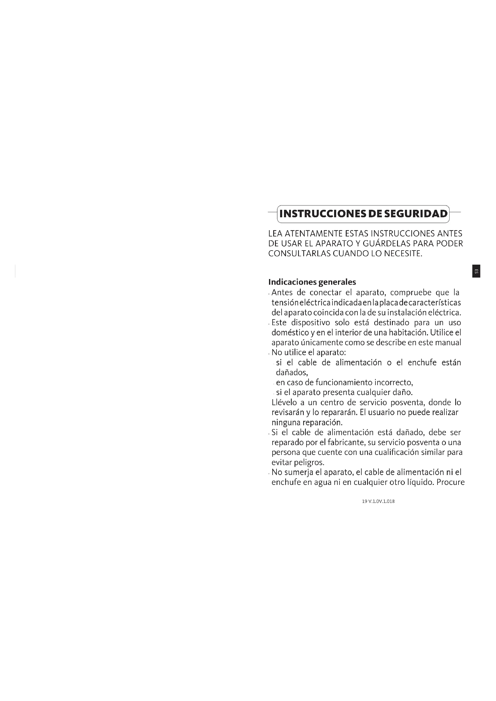 17 V.1.0V.1.0 16INSTRUCCIONES DE SEGURIDAD