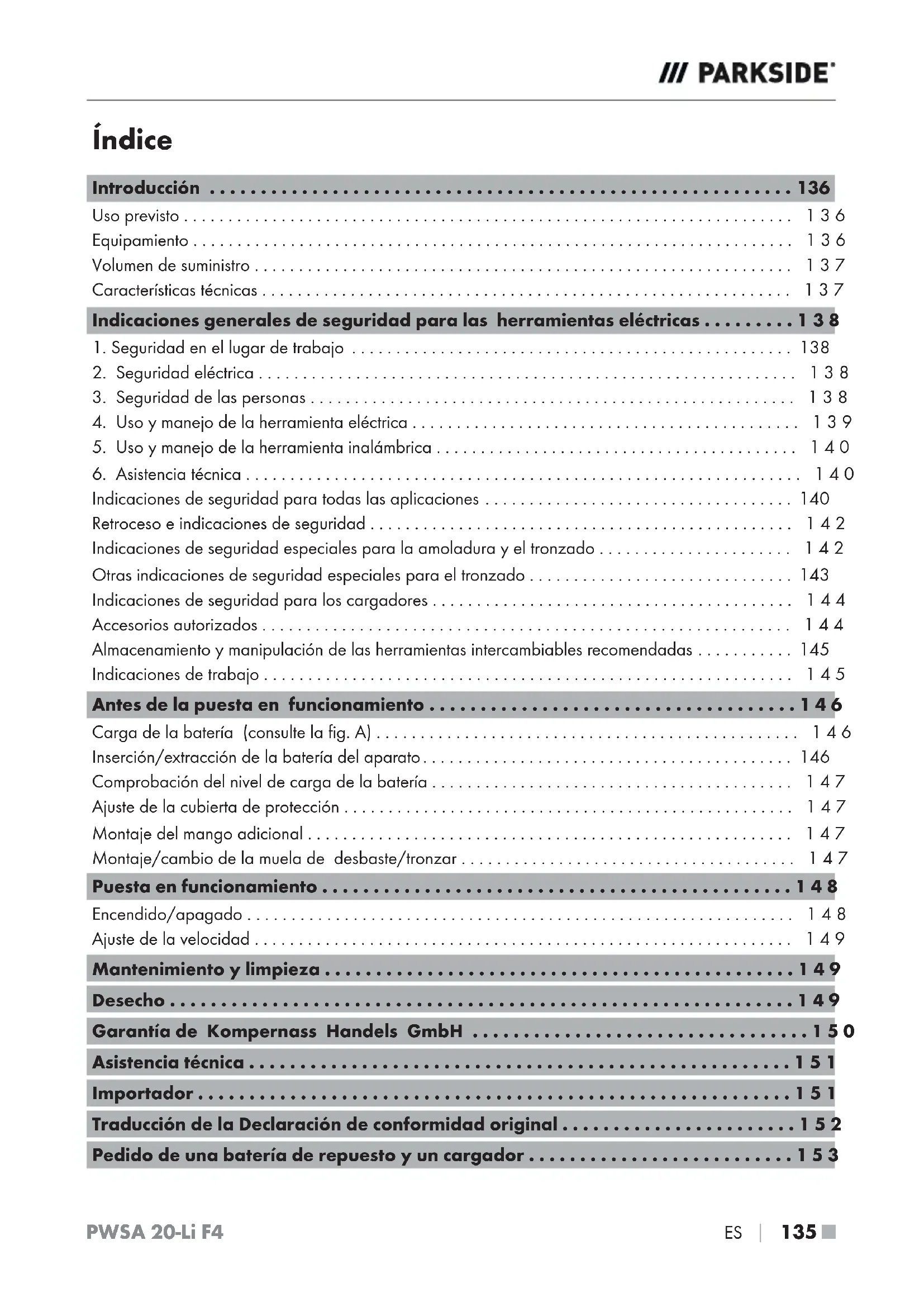 MANUAL DE USUARIO PWSA 20Li F4 PARKSIDE