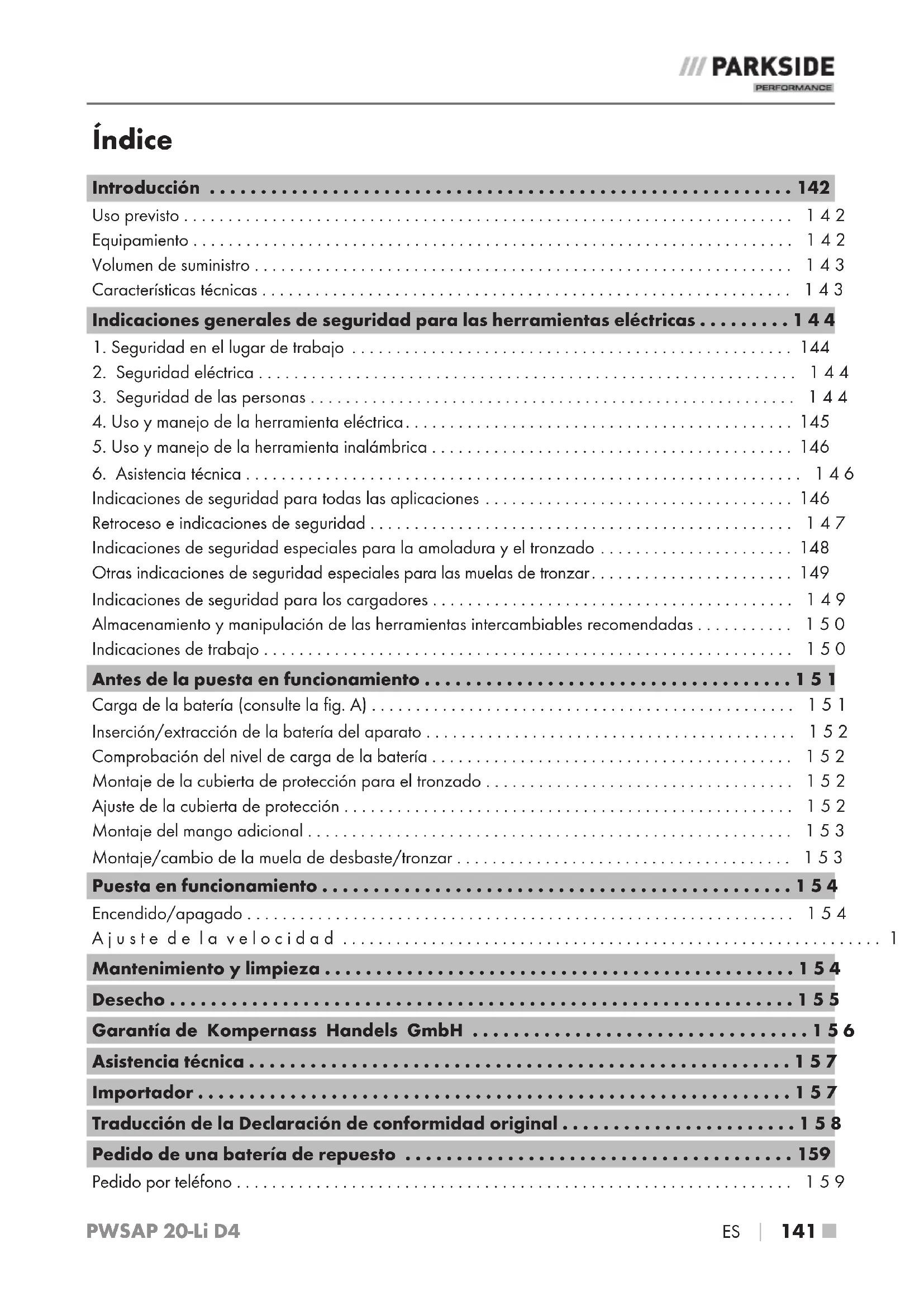 - Pedido por teléfono PWSAP 20-Li D4 ■ 142 p. 159