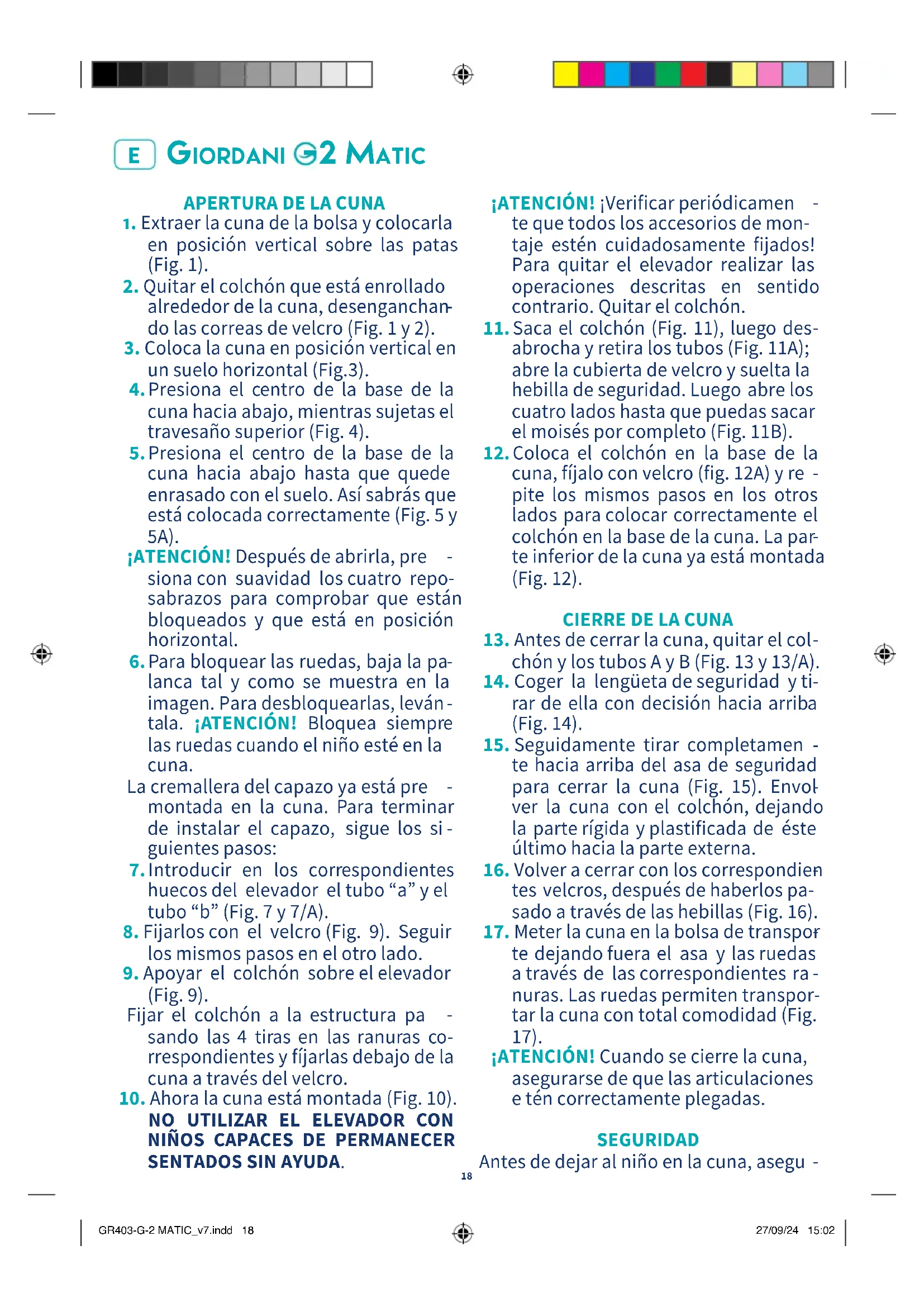 te hacia arriba del asa de seguridad para cerrar la cuna (Fig. 15). Envol