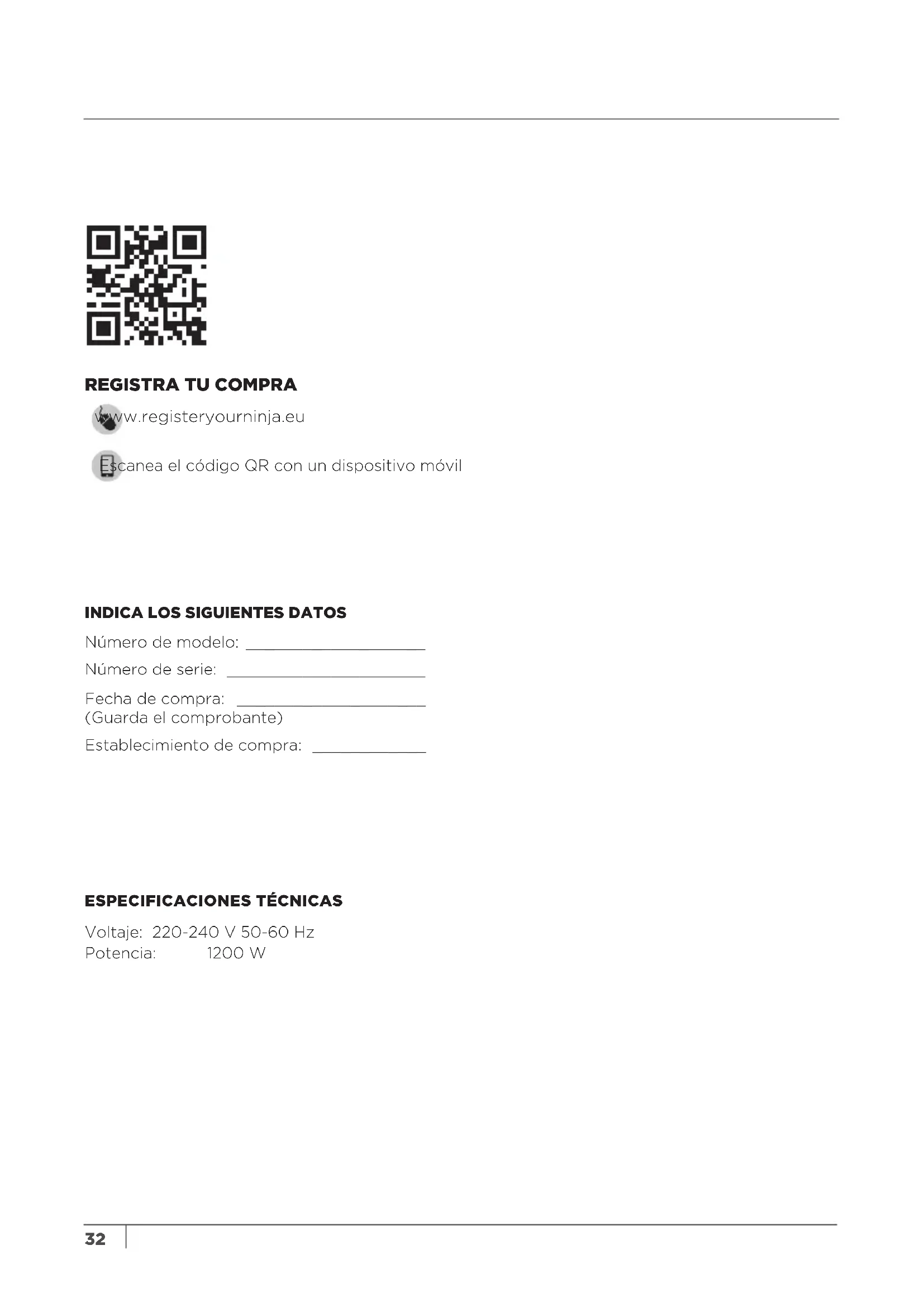 - Para el registro en línea, visita www.ninjakitchen.es IMPORTANTE: