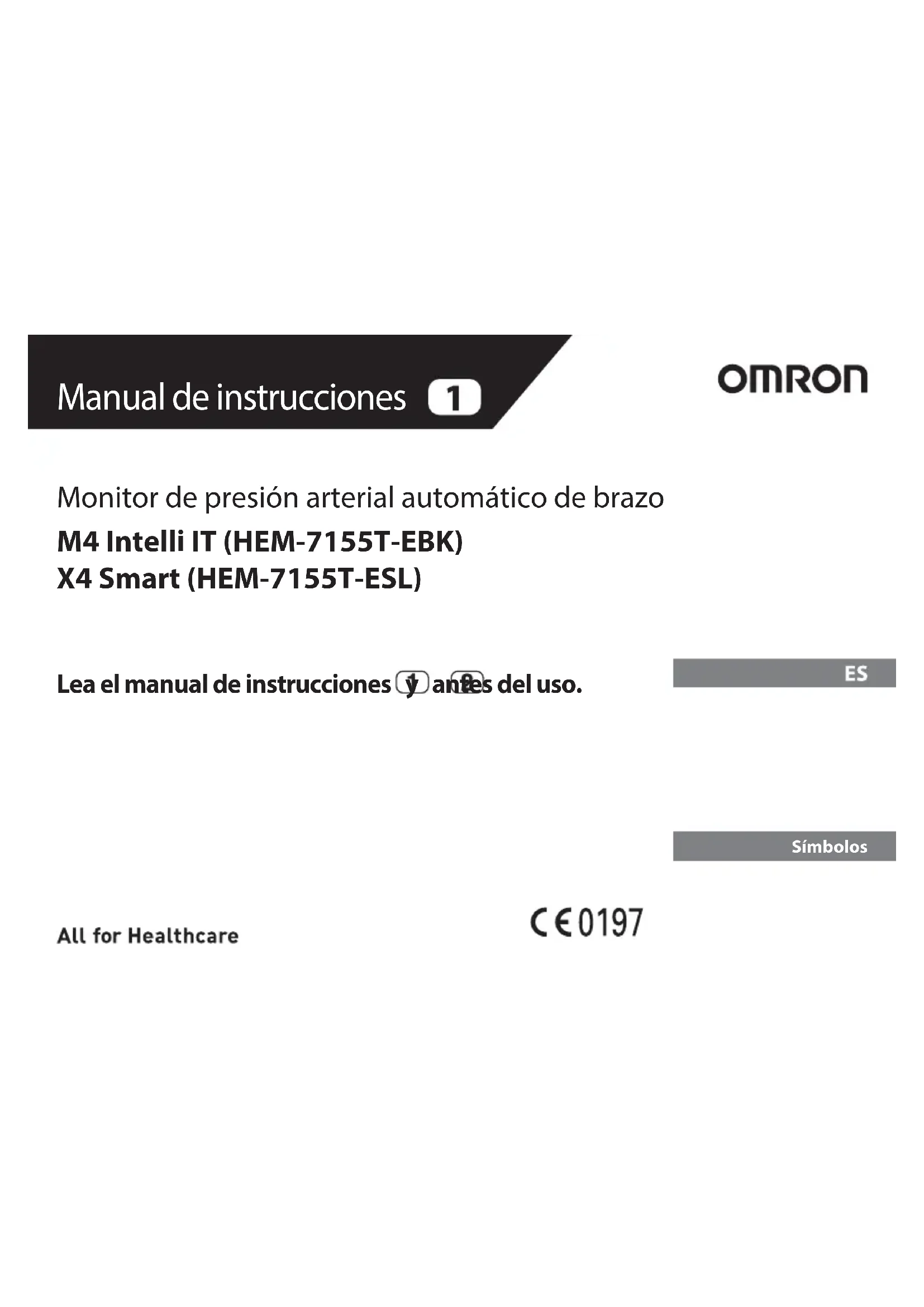 En este manual de instrucciones se proporciona información importante sobre el monitor de presión arterial automático de brazo OMRON. Para asegurarse de usar el monitor de forma segura y adecuada, debe LEER y ENTENDER todas las instrucciones de seguridad y de funcionamiento. Si no entiende las instrucciones o tiene preguntas, póngase en contacto con su tienda o distribuidor OMRON antes de tratar de usar el monitor. Para obtener información específica sobre su presión arterial, consulte a su médico.