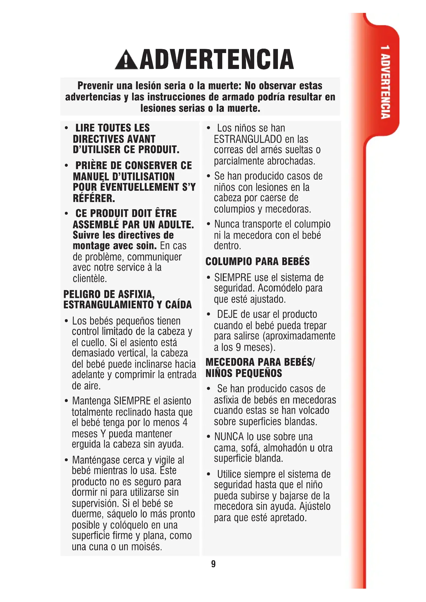 - Se han producido casos de asfixia de bebés en mecedoras cuando estas se han volcado sobre superficies blandas.