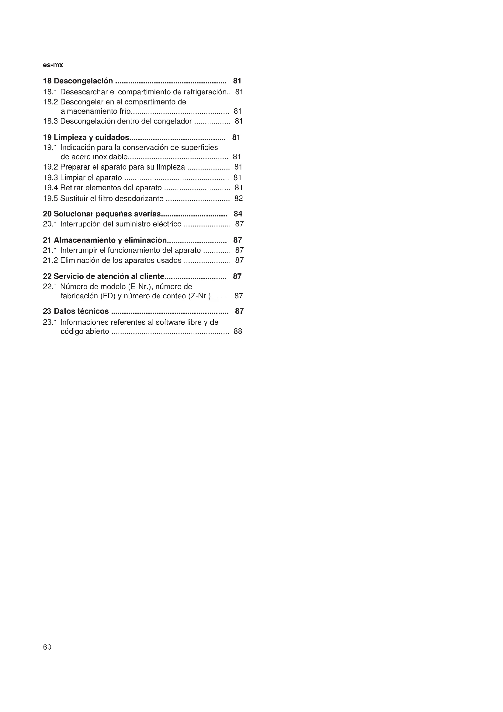 compartimento de almacenamiento frío.................. 78 16 Congelador ............................................................. 78